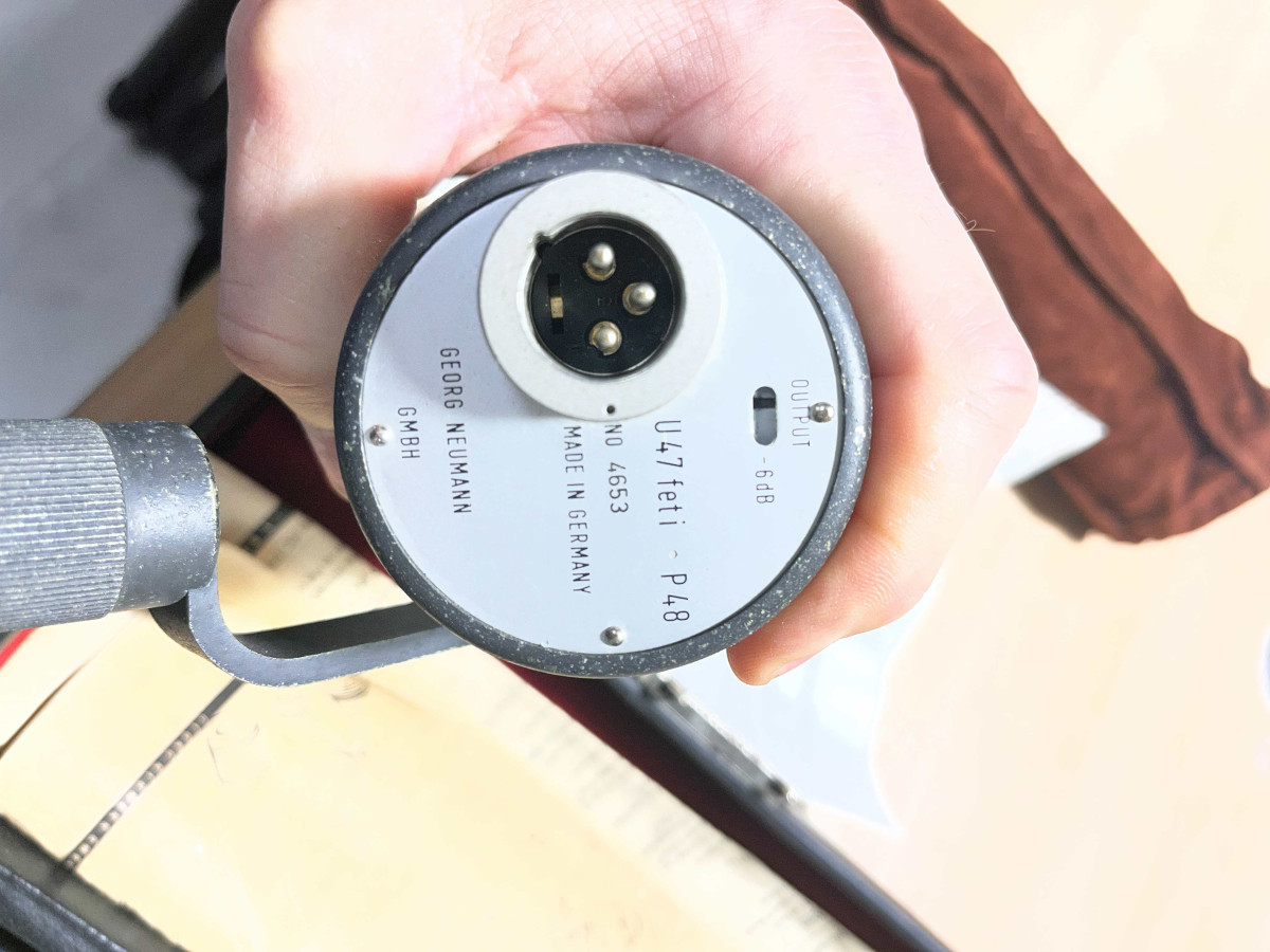Se trata de un Neumann U47 FET, uno de los micrófonos más icónicos