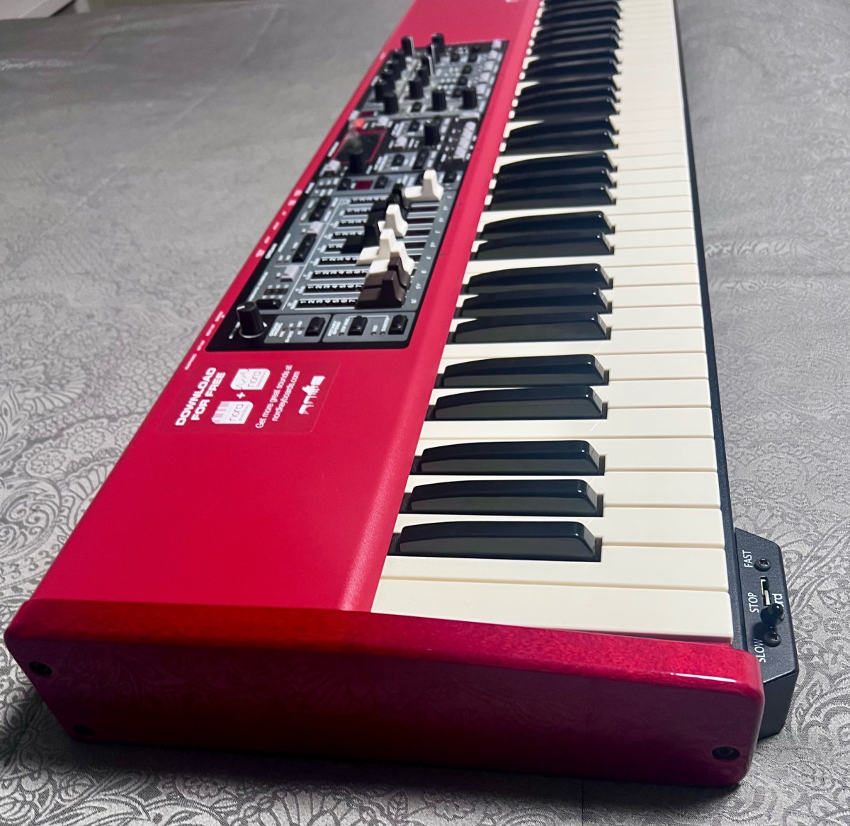 Teclado Nord Electro 5D 73 en excelente estado por no usar. Lo compré (nuevo en tienda) para un proyecto que no se llevó a cabo y en casa no lo uso, lo tengo guardado en su funda. Aún no le he quitado el precinto de la pantalla. Como extra incorpora el