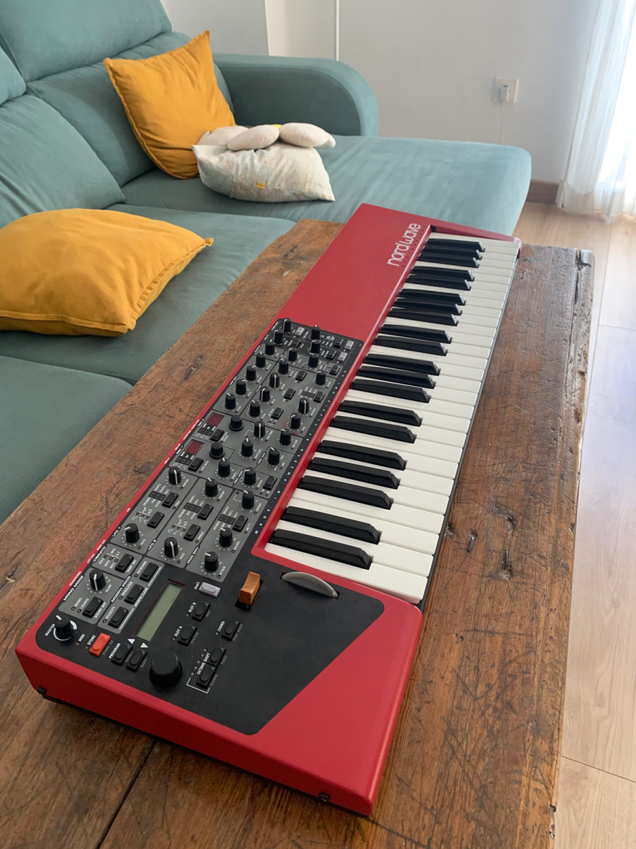 Sintetizador de 49 teclas, calidad Nord, capacidad de samplear sonidos externos a través del software propio de Nord.