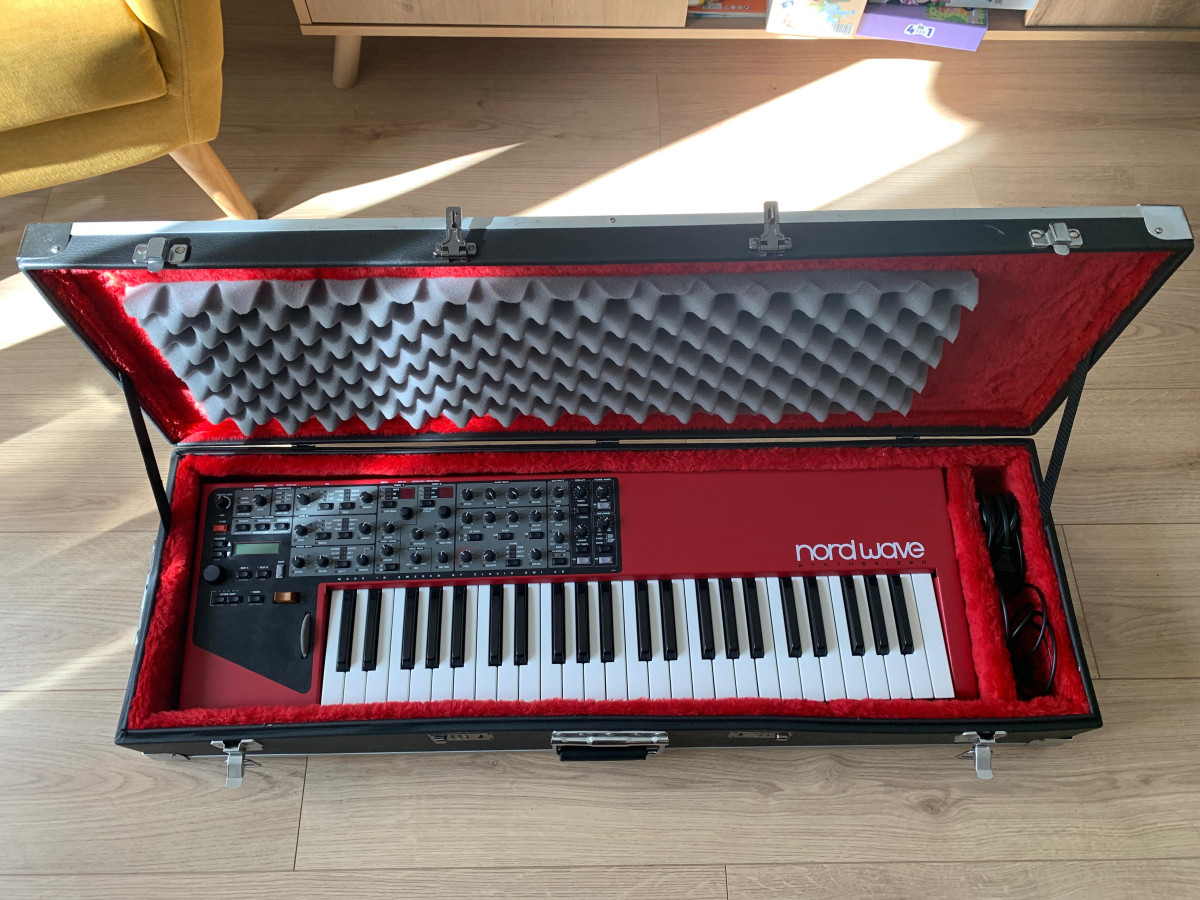 Lo entrego con 4gb de samples de todo tipo de instrumentos y con el flightcase rígido que se ve en la imagen, a medida del Nord Wave, muy acolchado en el interior, buenos cierres con combinación y ruedas bsatante robustas.