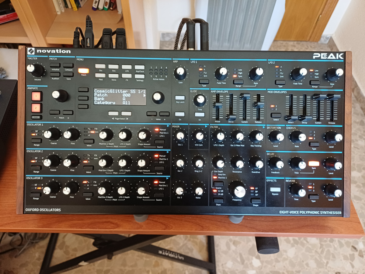 Vendo mi Novation PEAK. Se encuentra en perfectísimas condiciones, tanto estéticas como funcionales (ver fotos). Creo que sobran las descripciones, pues es un sintetizador muy conocido: polifónico de 8 voces, 3 osciladores FPGA y resto de la arquitectura analógica. 3 efectos digitales (la mejor reverb que he escuchado nunca en un sintetizador) y distorsión analógica. Síntesis sustractiva, wavetable y FM. Extensa matriz de modulación. En definitiva: mucho y muy bueno.