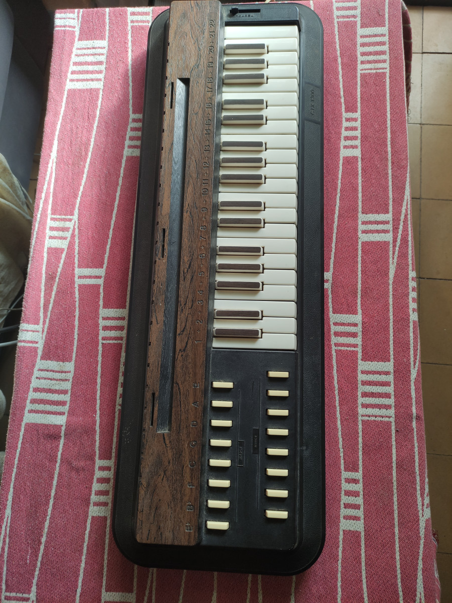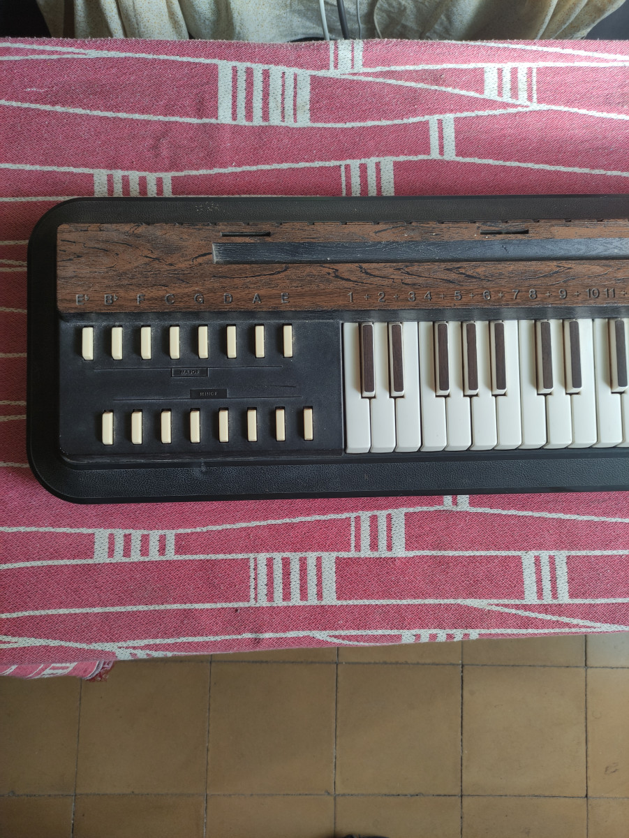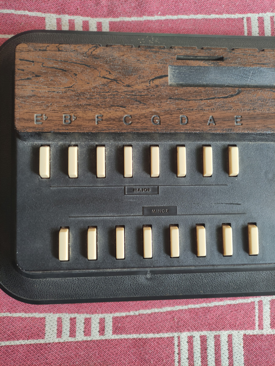 Un órgano súper particular de acordes con ventilador eléctrico. Es como un armonium (o harmonium) eléctrico. Es polifónico y tiene además teclado de 37 notas unos botones para acordes mayores y menores como se ve en la foto.
