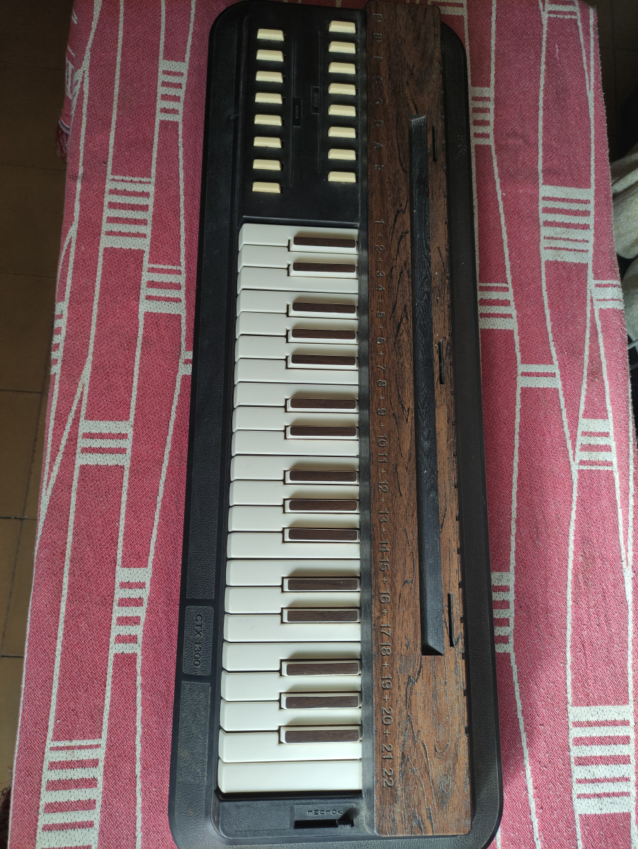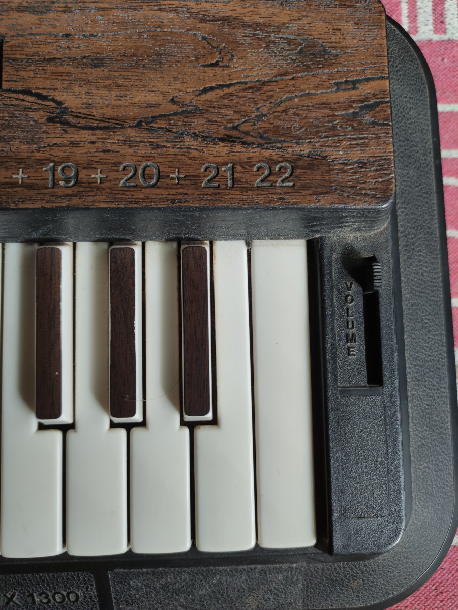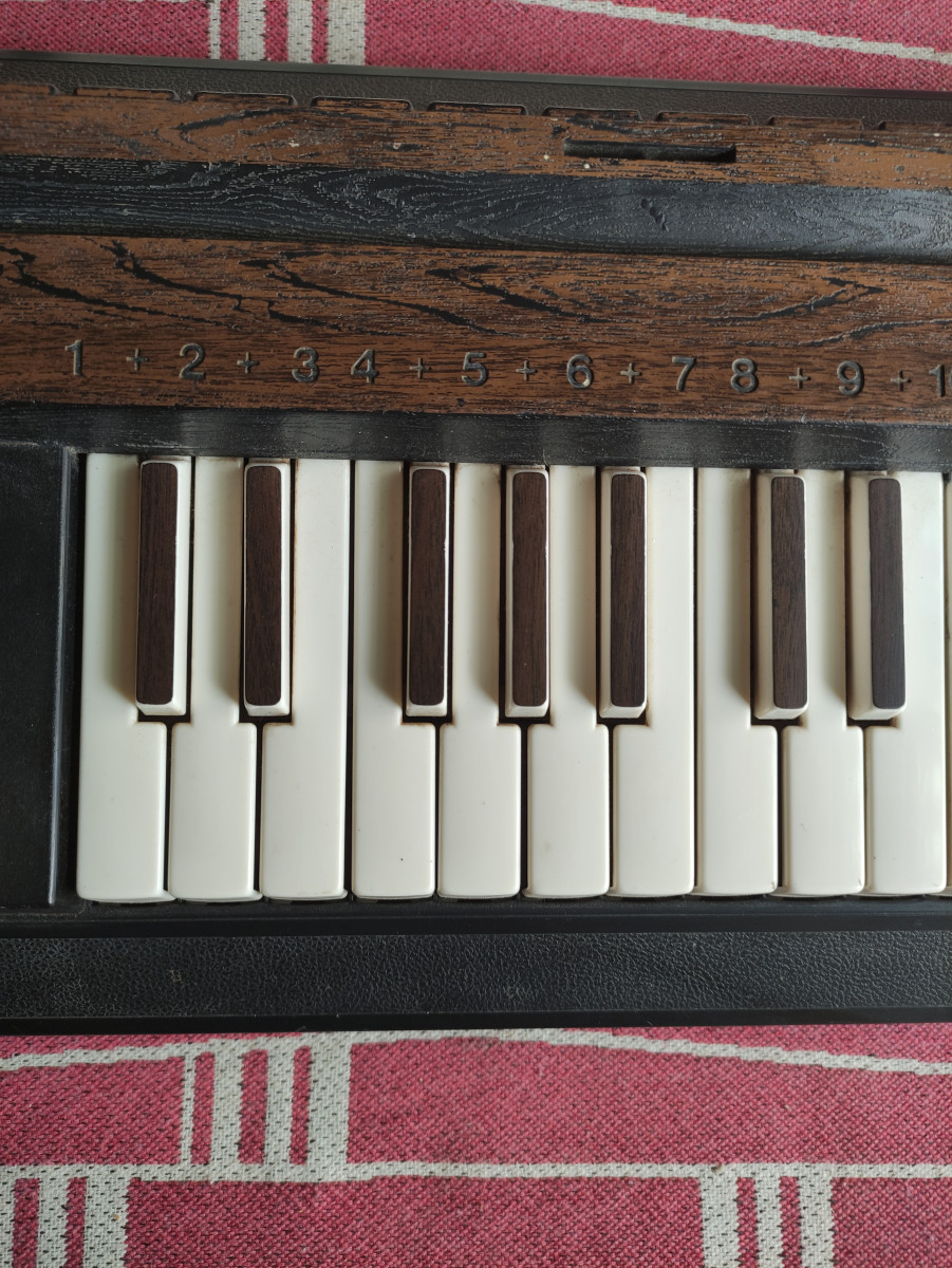 Un órgano súper particular de acordes con ventilador eléctrico. Es como un armonium (o harmonium) eléctrico. Es polifónico y tiene además teclado de 37 notas unos botones para acordes mayores y menores como se ve en la foto.