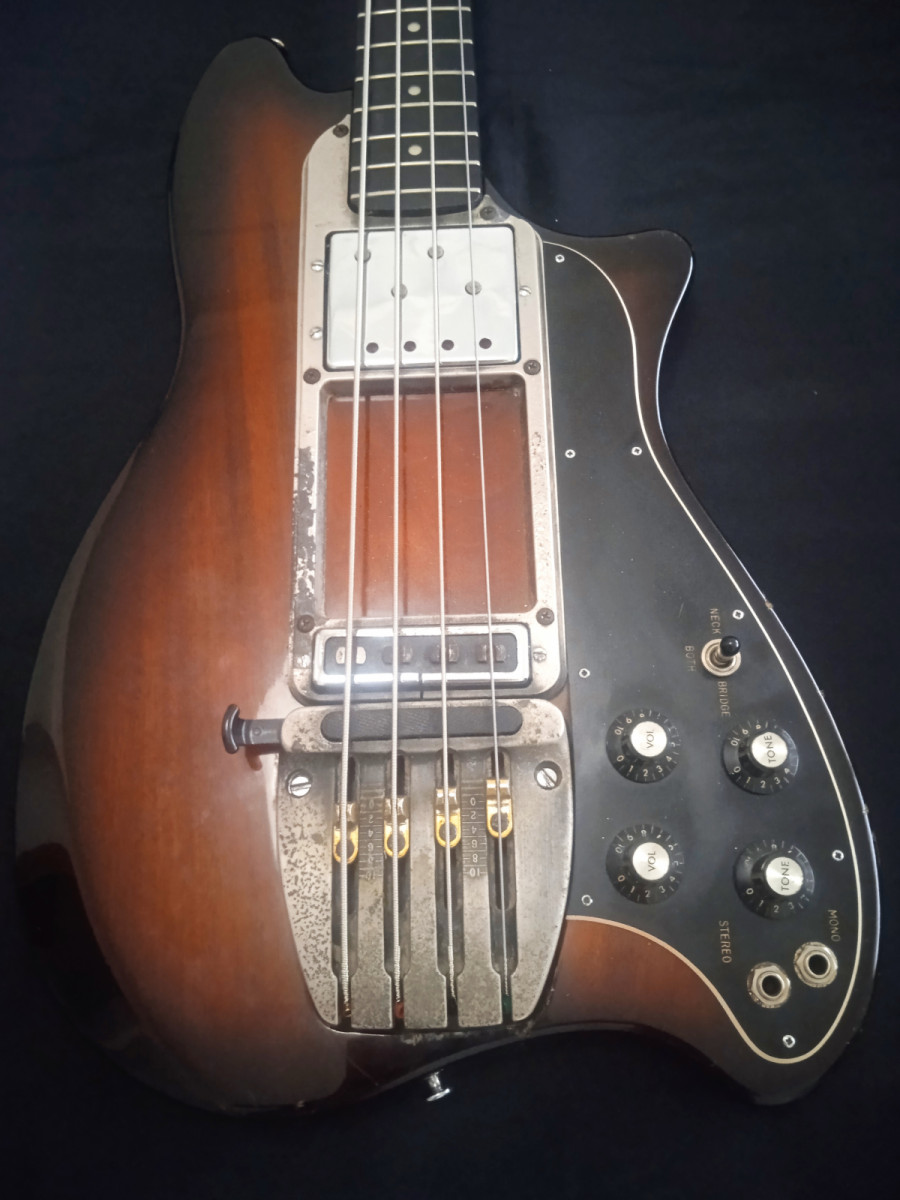 Pongo a la venta este bajazo de los 70s, made in USA, cuerpo de caoba, diapason de ebano, salida estereo y con su estuche original.