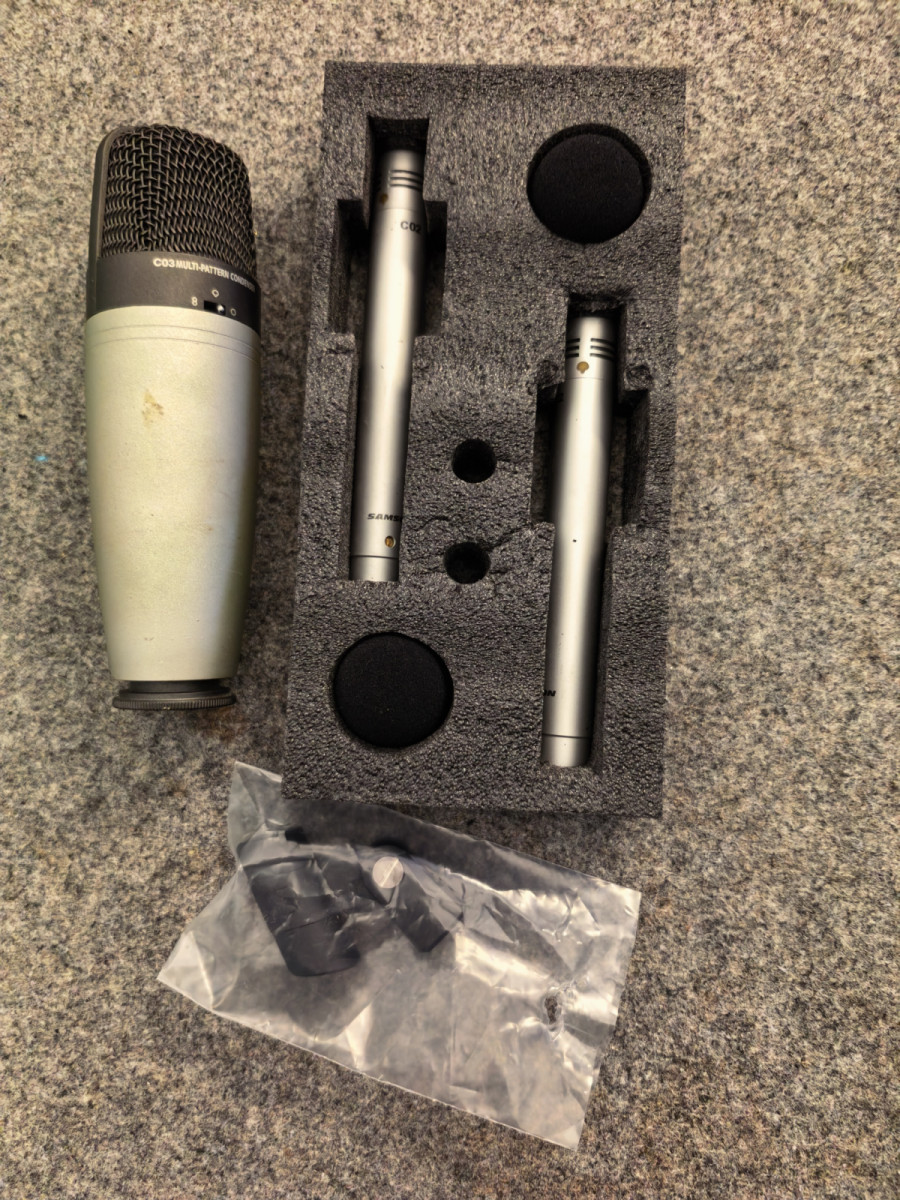 Vendo pack completo de 3 micrófonos de condensador marca SAMSON. El kit perfecto para iniciarse en grabación de Home Studio, podcast o instrumentos. Incluye:
