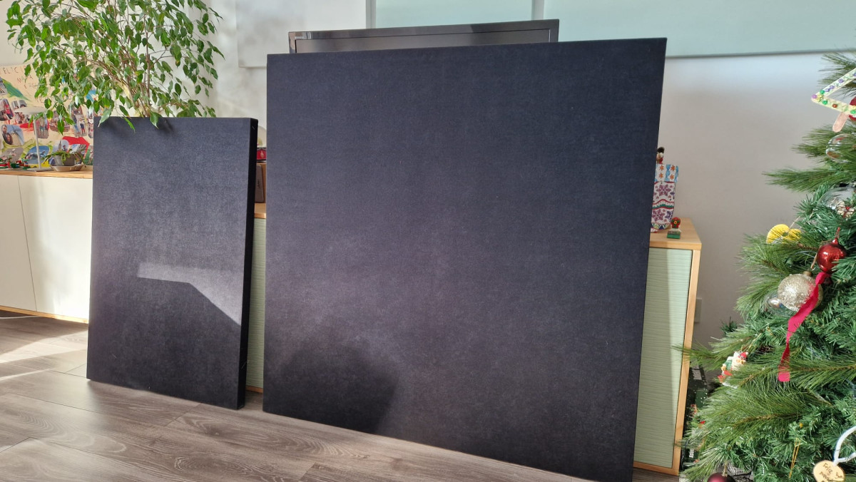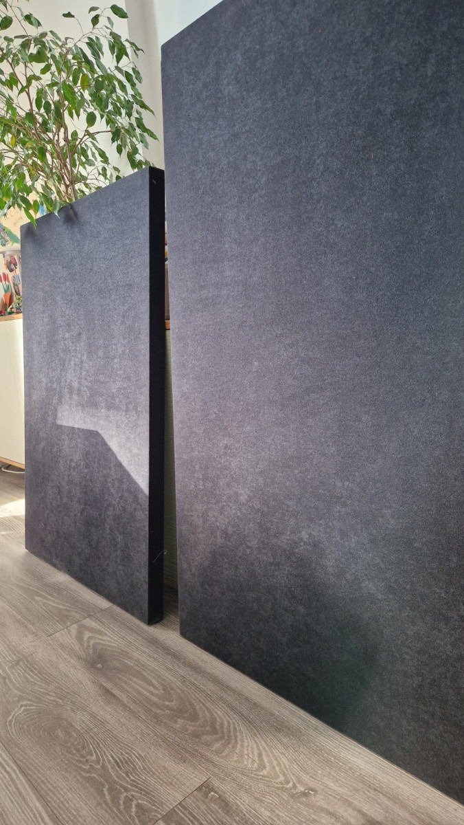 Paneles acústicos de alta calidad, fabricados por empresa acústica https://www.desantiproyectos.com/, ideales para mejorar la sonoridad de cualquier espacio. En total son 3 paneles. Los 2 grandes tienen sistema de fijacion oculto. Instalados en espacio libre de humos.