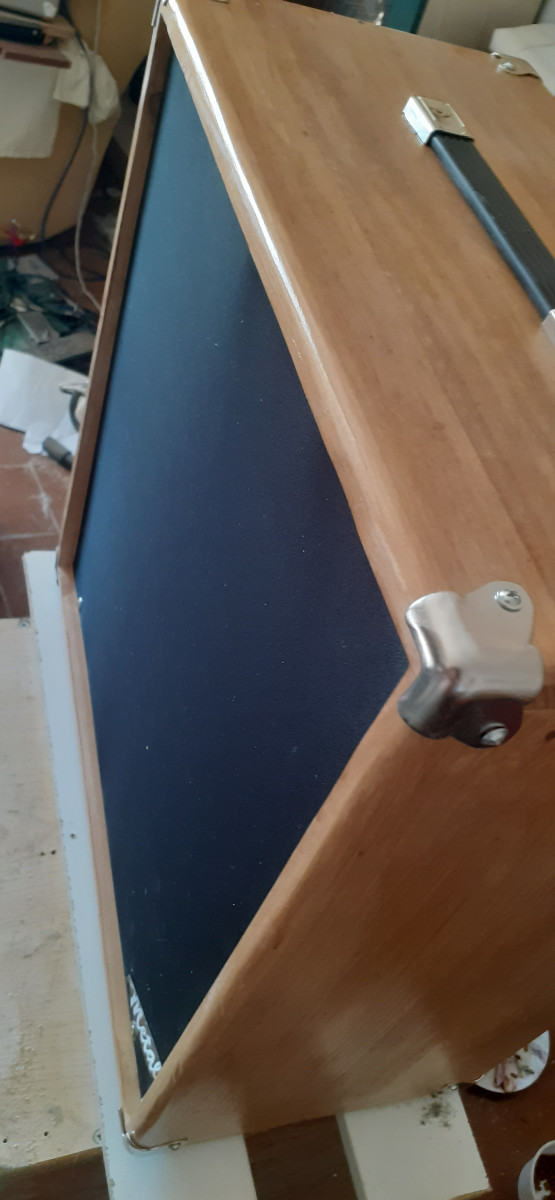 Muy buena pantalla, con un sonido espectacular. 4x8 80/100 w.a 8ohmios (sacados de una pantalla Sinmarc) hecha en madera de Abeto finlandes 18mm. Acabado color Castaño Satinado. Cantoneras metálicas, asa retráctil, tacos de goma y copela metálica negra con entrada de jack. Tela acústica negra, md:53×53×27 pd:13kg. También podría vender, sin altavoces. Estoy abierto a cambios. ( Mira en mis anuncios. Tengo cosas curiosas) portes incluidos a la península.