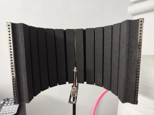 Pantalla absorbente de sonido para grabaciones de audio. Ayuda a reducir el eco y la reverberación.