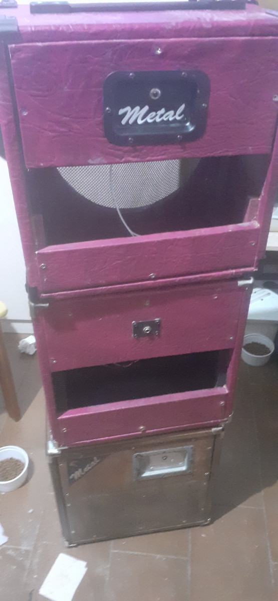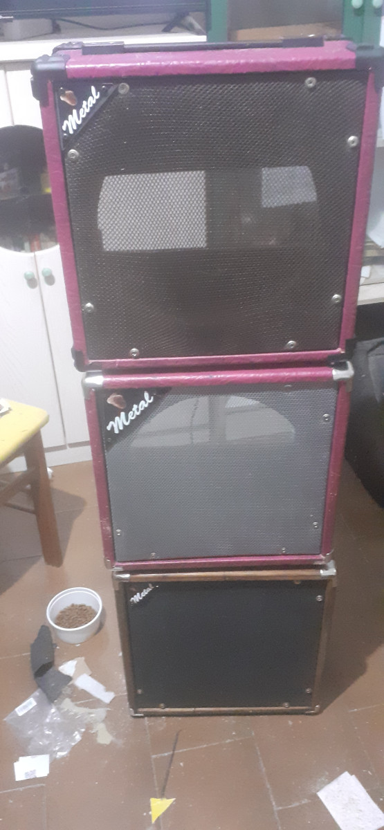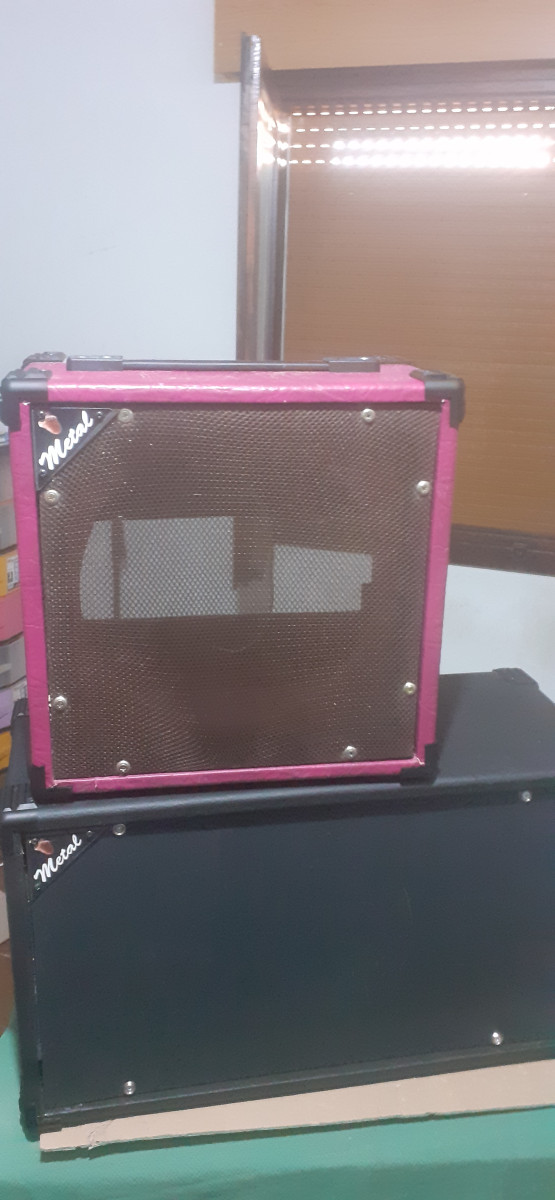 Pantalla artesanal 2x10 en tolex negro y otra 2x10 en madera de Abeto finlandes 18mm. Dos pantallas en tolex color Fucsia y una pantalla 1x10 en Abeto. Nuevas a estrenar. Mas información en guitarristas. ( Mira en mis anuncios. Tengo cosas curiosas.