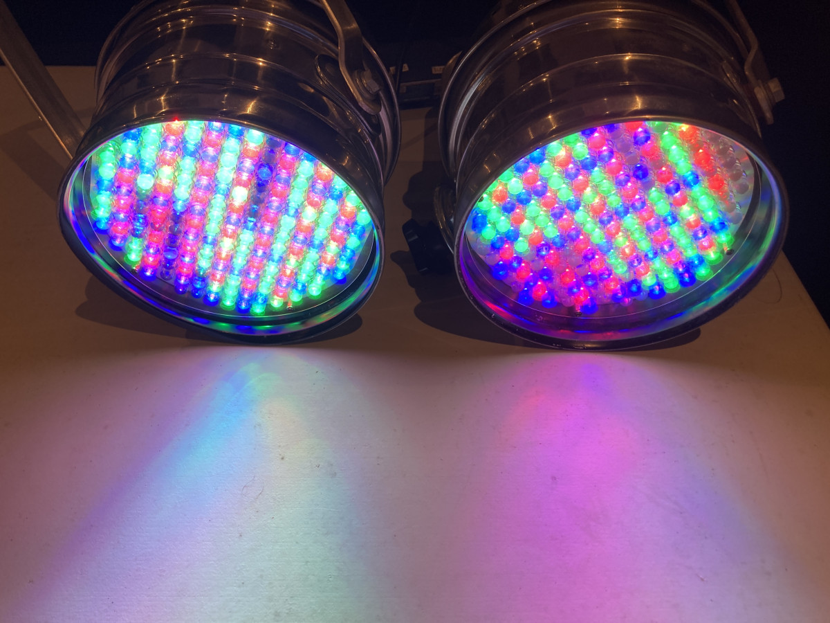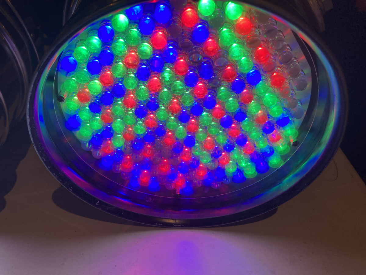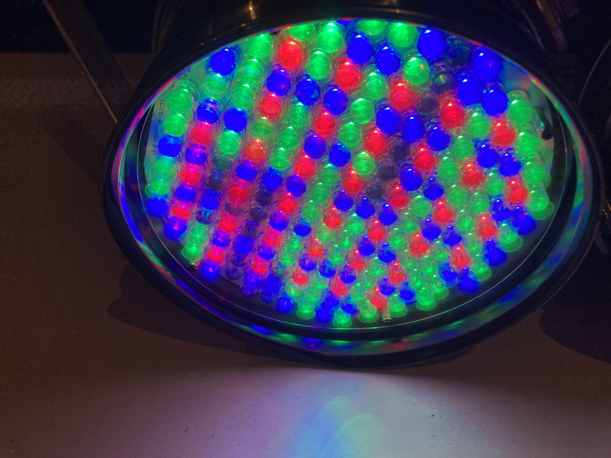 Incluye control por sonido con un potenciómetro regulas la velocidad de los cambios de luz o dmx para poder conectarlos a una mezcladora u otros dispositivos.