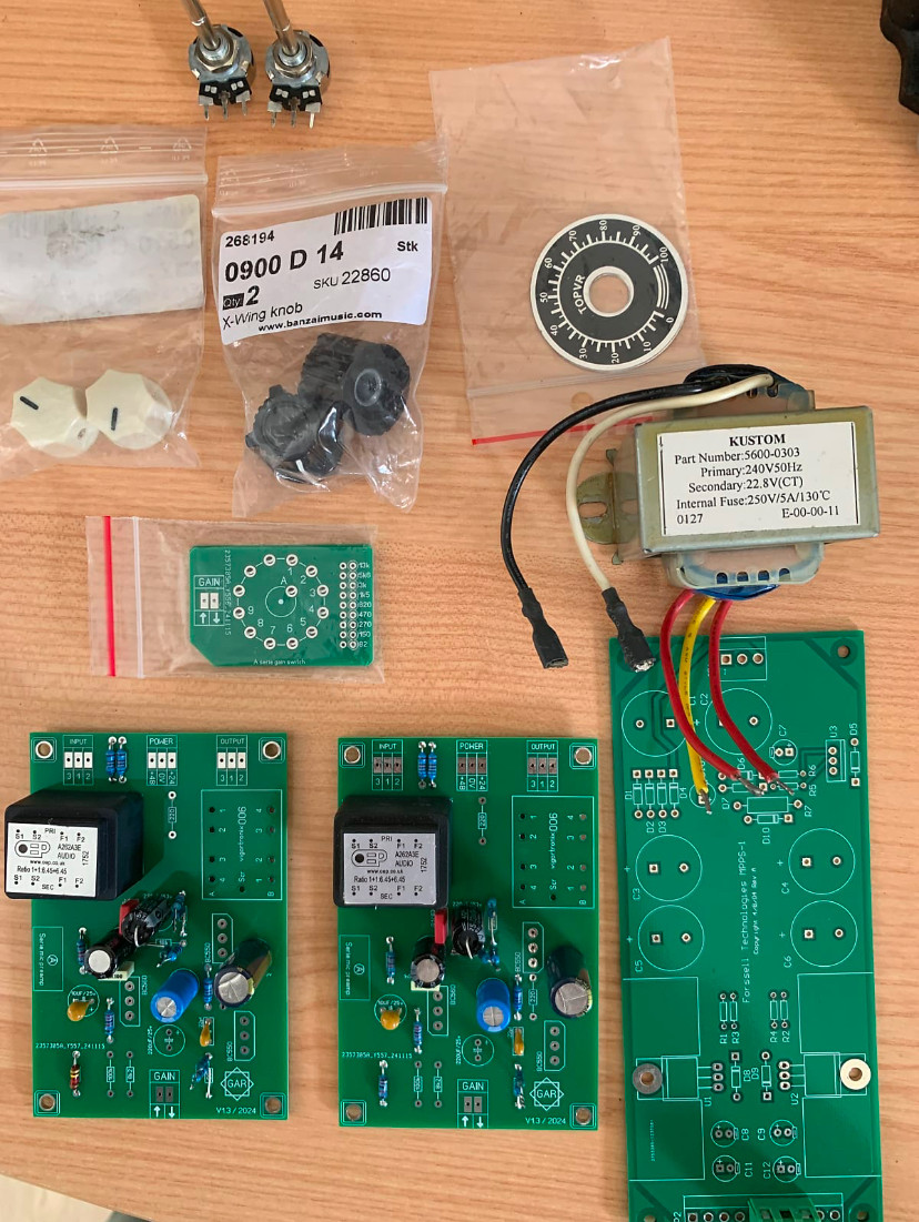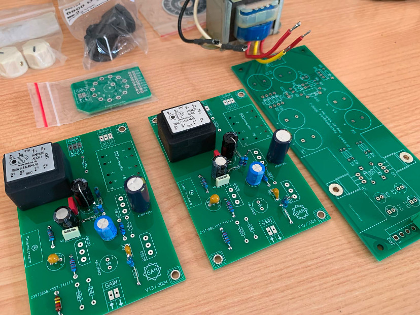 Dos PCB con algunos componentes ya instalados + una PCB PSU de Forssell Technologies.