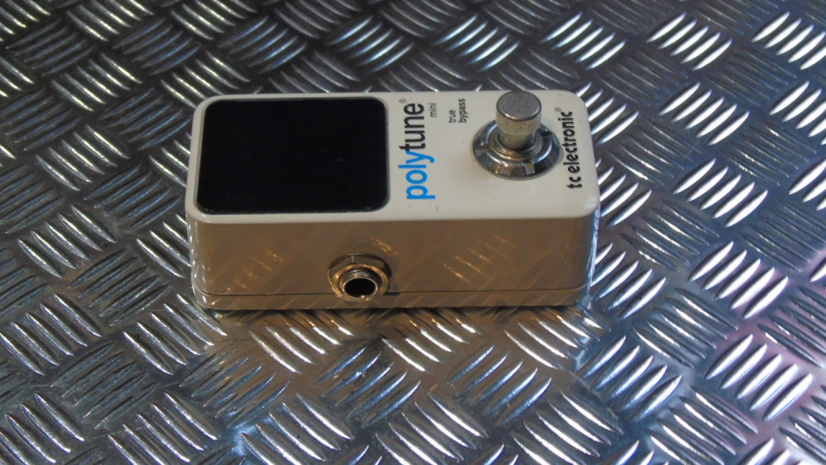 Pedal de afinación de Tc Electronics, puedes tocar todas las cuerdas a la vez o de una en una y e Polytune te indicará mediante leds cual está afinada y cual no.