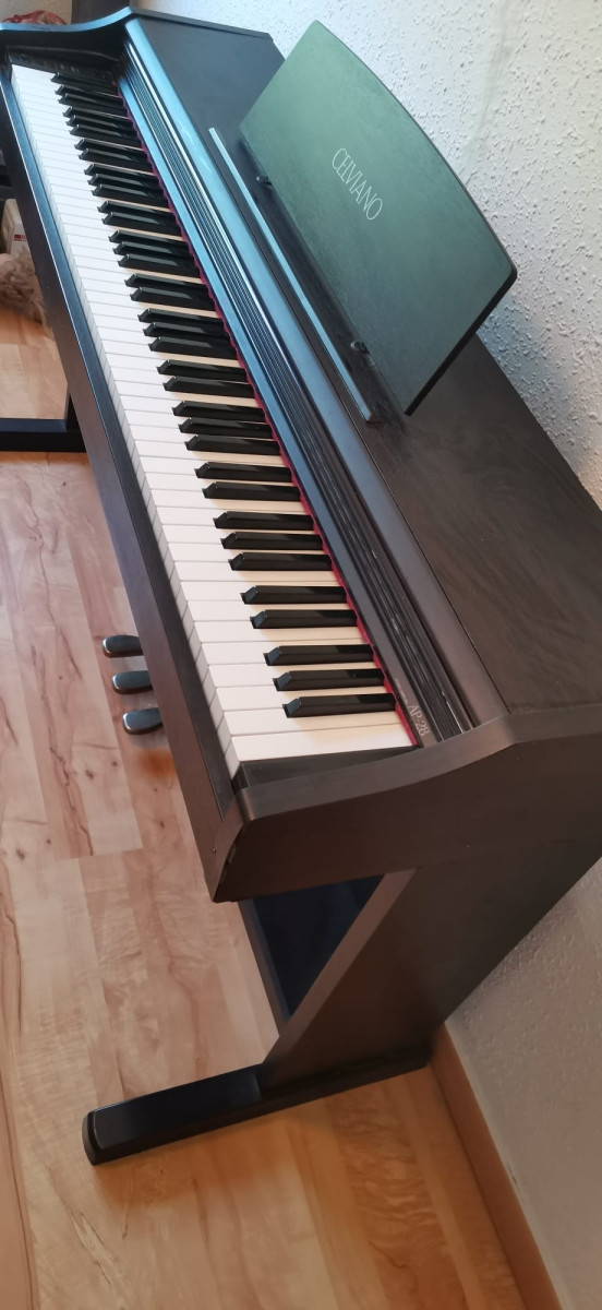 Sonido y tacto muy natural. Funciona muy bien, pero estéticamente tiene los defectos en la melamina que se pueden apreciar en las fotos. Es en los laterales y sobretodo esquinas.