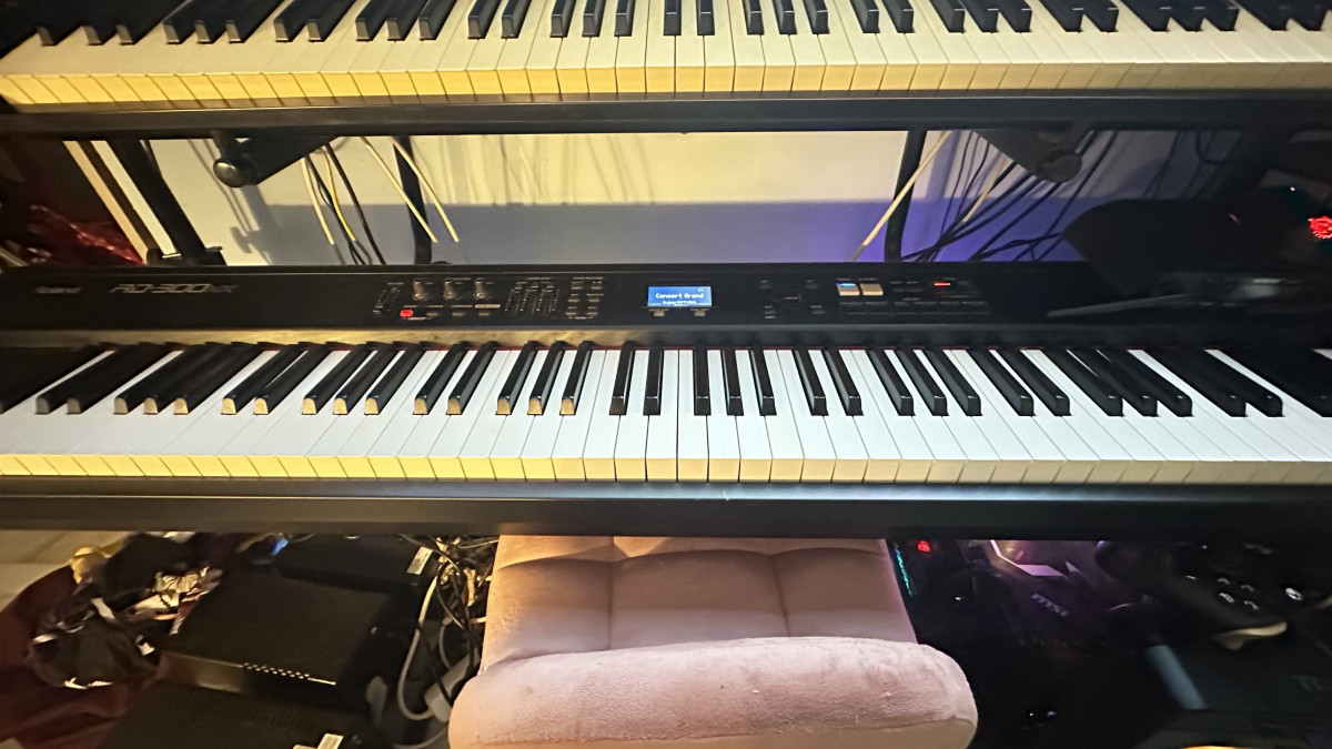 Piano de escenario Roland RD-300NX en color negro. Ideal para músicos y actuaciones. Muy buen estado y ha salido poco de mi Estudio. En perfectas condiciones, tiene una tecla con una raya y debajo un roce en lo negro, adjunto foto, se nota poco en el conjunto. Teclado con accion martillo total, con tacto Yvory feel, es famoso entre pianistas por su excelente ejecucion y teclado realista. Fantasticos sonidos Roland incluido el afamado Piano Supernatural Roland.