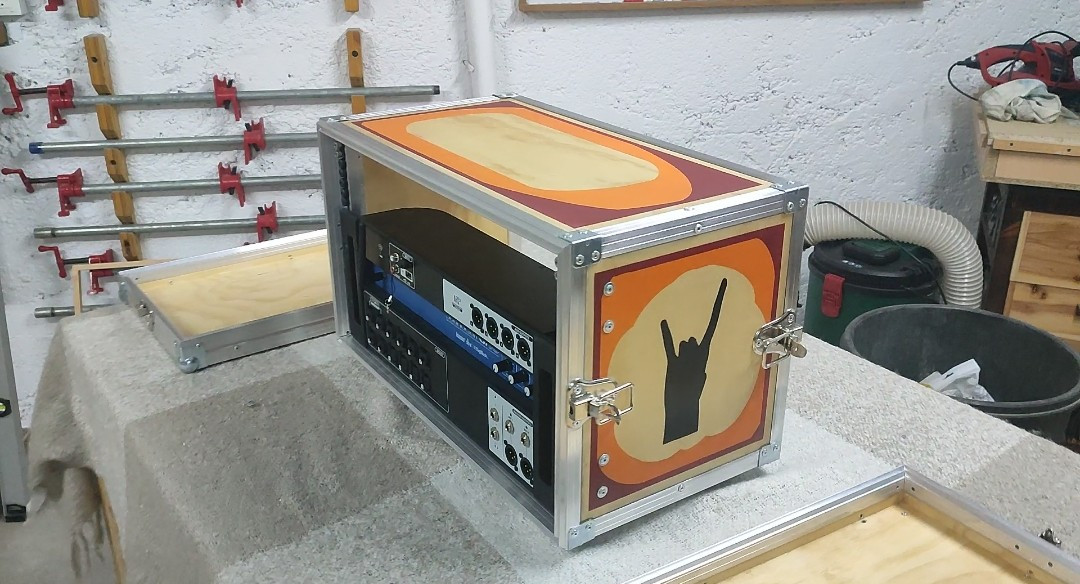 Flightcase o maleta de transporte para equipo de rack de 6 unidades.