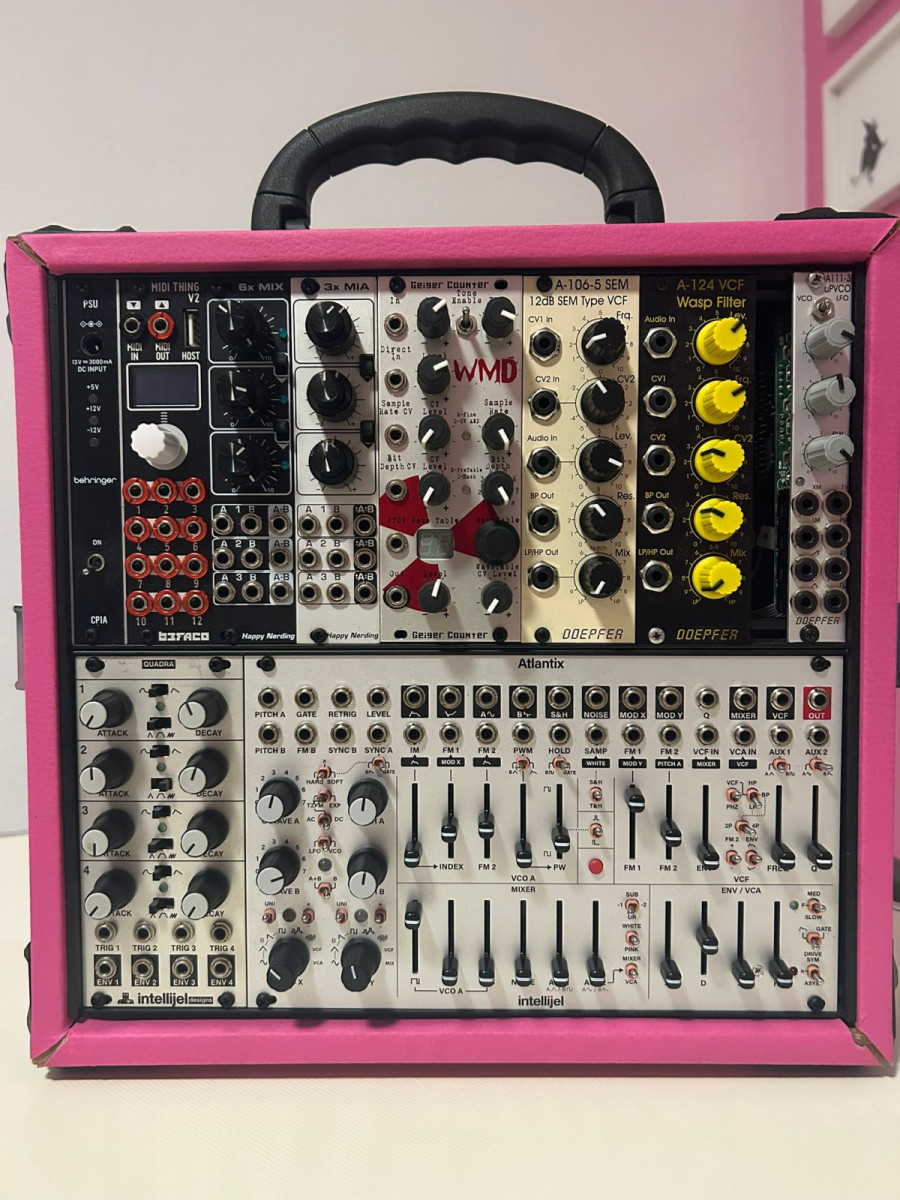 Es un case muy muy comodo y bastante bonito al ser pequeño, es poco profundo ( 6cm, ojo con módulos muy profundos) pero es perfecto para llevar por ahí, lo construí con la idea de llevarlo a sesiones con facilidad y me da pena pero me estoy deshaciendo de gran parte del eurorack, no es especialmente pesado y tiene tapa para poder llevarlo sin miedo de darle golpes.