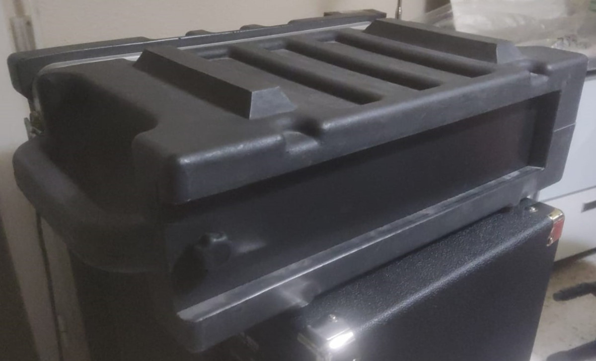 Lo tenía con un Ampeg B1R que tenía a la venta y que finalmente se ha vendido en su embalaje original. El Ampeg no era muy profundo, y este rack, tampoco. Aquí podéis ver sus medidas y peso: