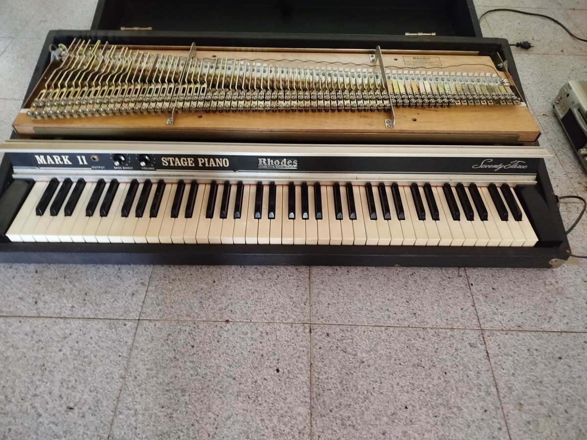 Este es el Rhodes Mark II / Stage Piano 1979 / Seventy Three. Una joya. Cualquier teclista desearía tenerlo.