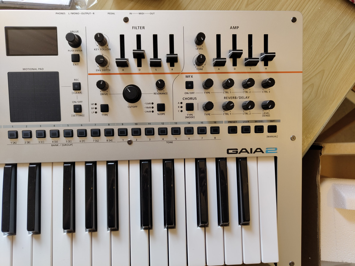 Sintetizador Roland Gaia 2 en perfectas condiciones con garantía aún y todo su embalaje original y accesorios originales. Comprado en dj mania en abril de 2024, adjunto factura.