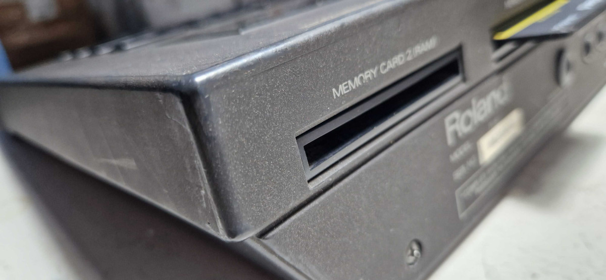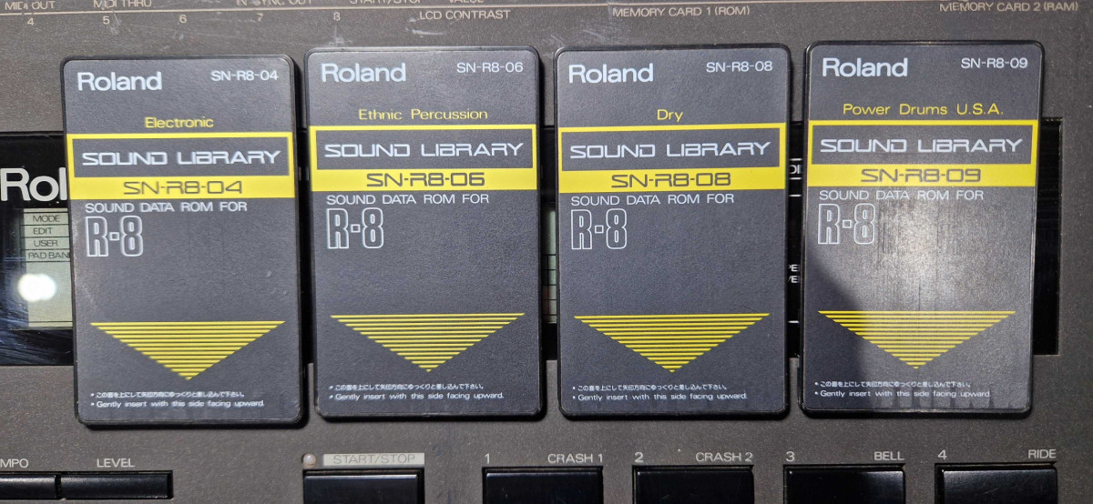 c) 4 tarjetas ROM, incluyendo la valiosa tarjeta "Electronic", con sonidos 808 y 909: