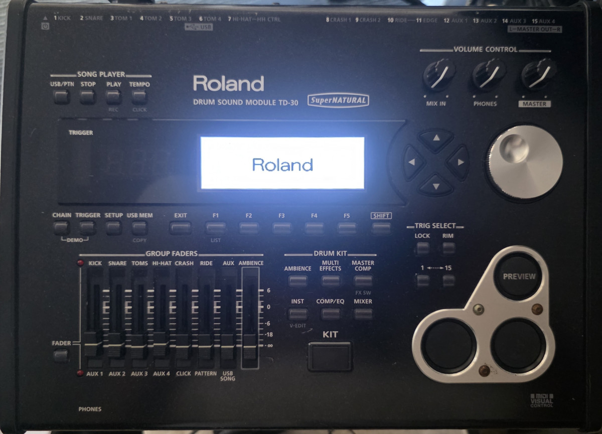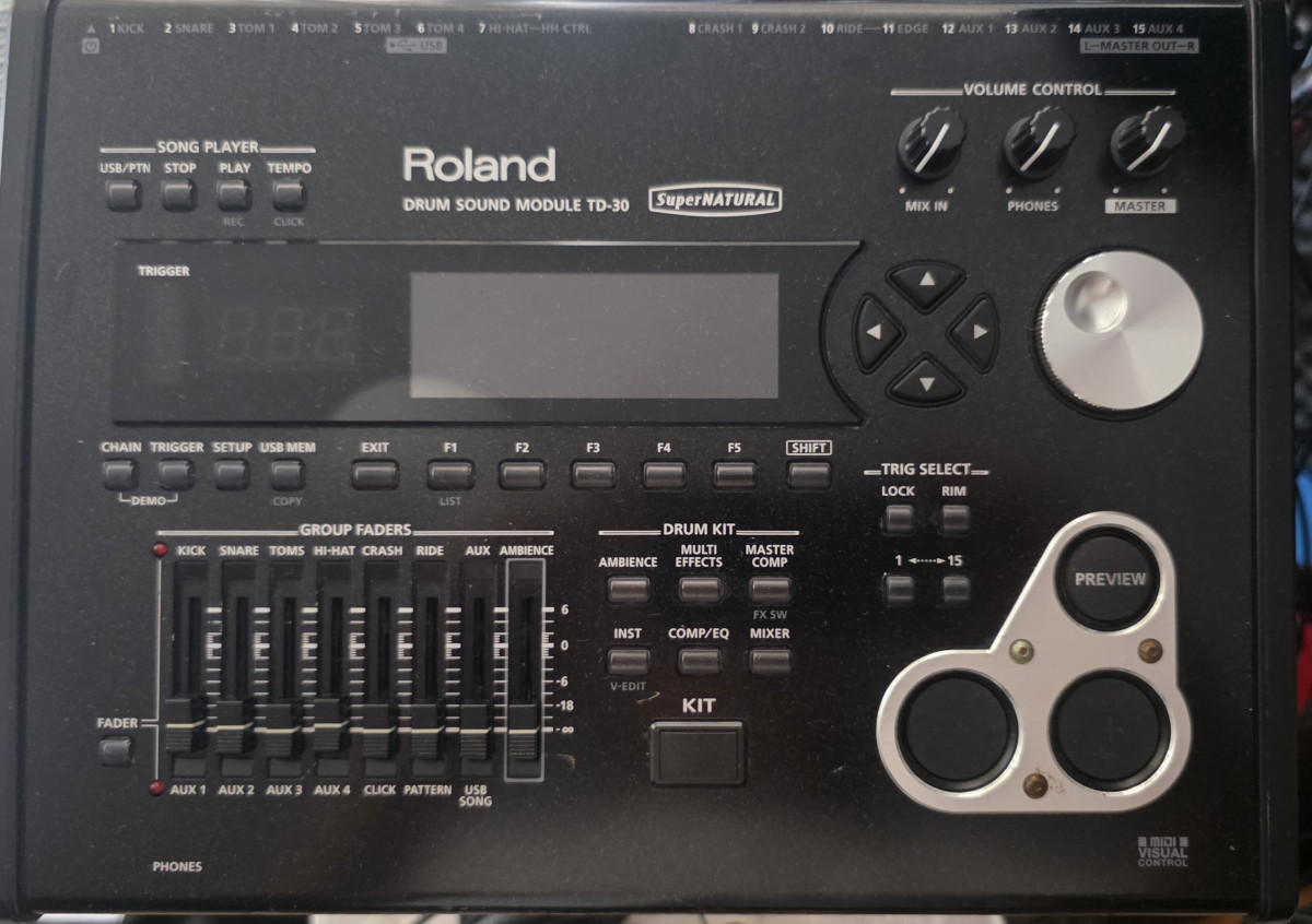 Vendo Modulo Roland TD 30 con su soporte,marcas tipicas de uso pero funcionando,actualizado a la ultima version y con sonidos extras Live Sound , vendo por cambio de modelo