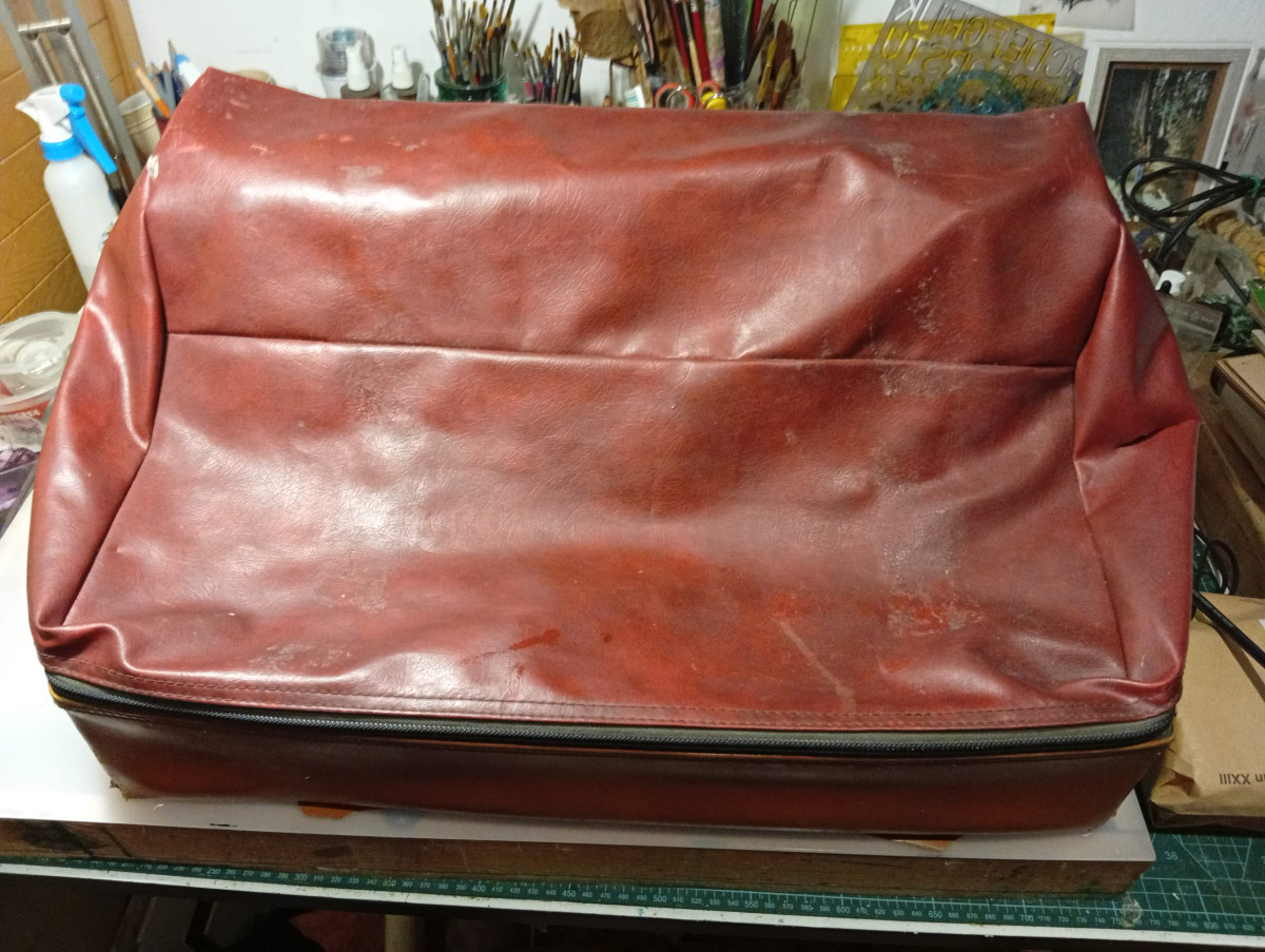 - Una funda de fabricación casera, que aún cumple su función de proteger al sinte de polvo y humedad, pero también tiene sus años, y estaría bien reemplazar por una más nueva.