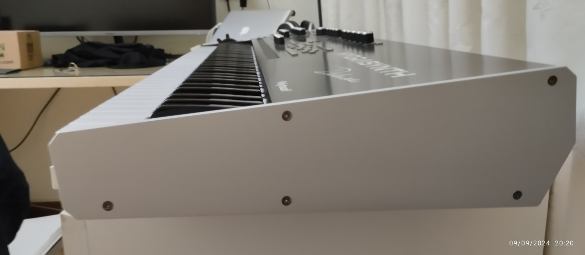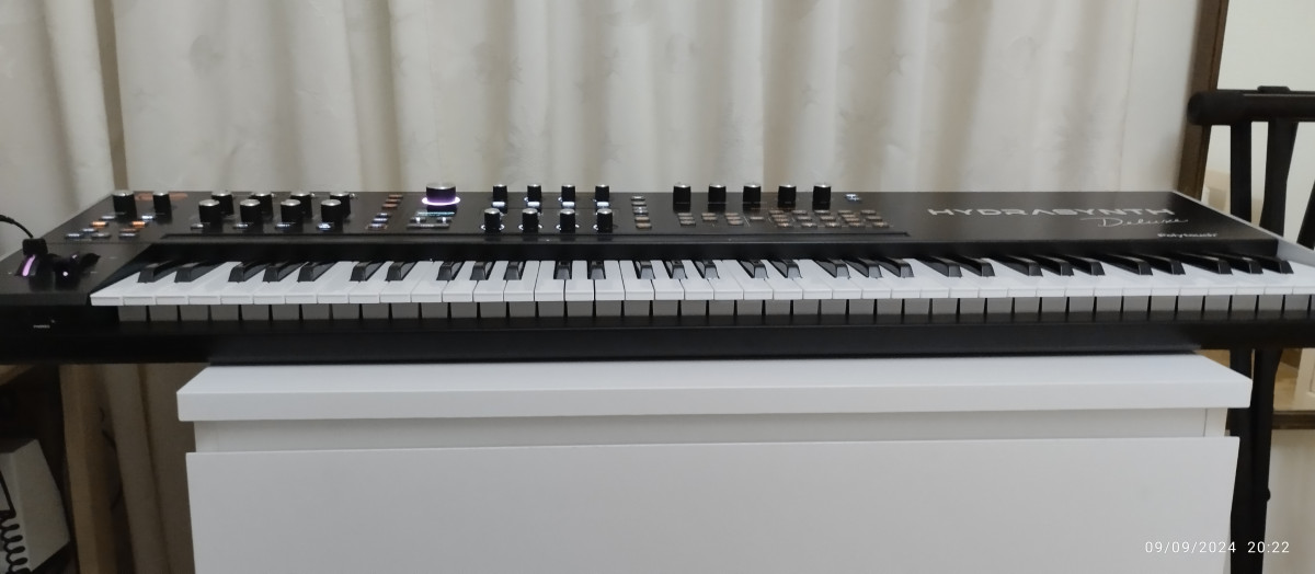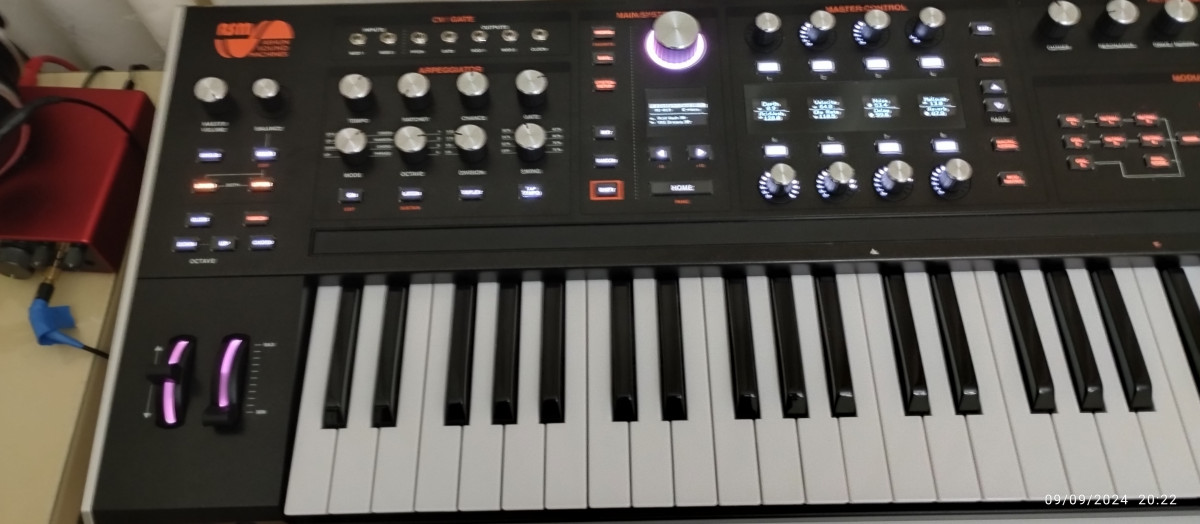 Sintetizador comprado a finales abril principios de mayo 2024. Sintetizador digital con 16 voces, doble motor de sonido, 3 osciladores,aftertouch polifónico.Cargado con bancos de pago ULTIMATE PATCHES, 300 sonidos. Con su doble caja, accesorios, manual y factura con toda la garantia.
