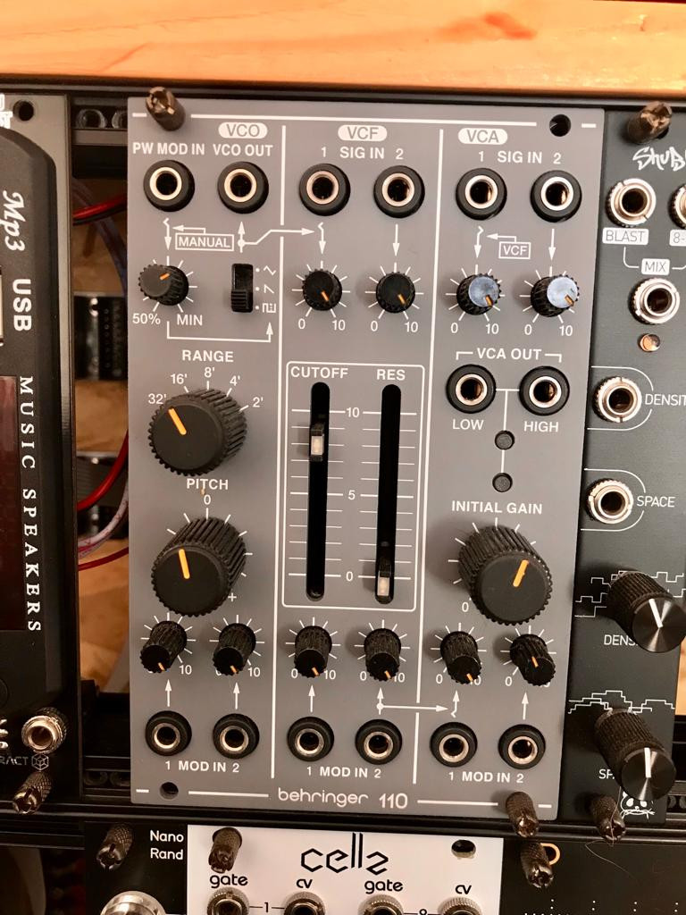 Su VCF emplea dos faders para controlar el corte y la resonancia y está cableado para recibir la señal del VCO y el VCA. Su VCF también cuenta con dos entradas de audio y una entrada CV. El VCO cuenta con controles de pitch y PW