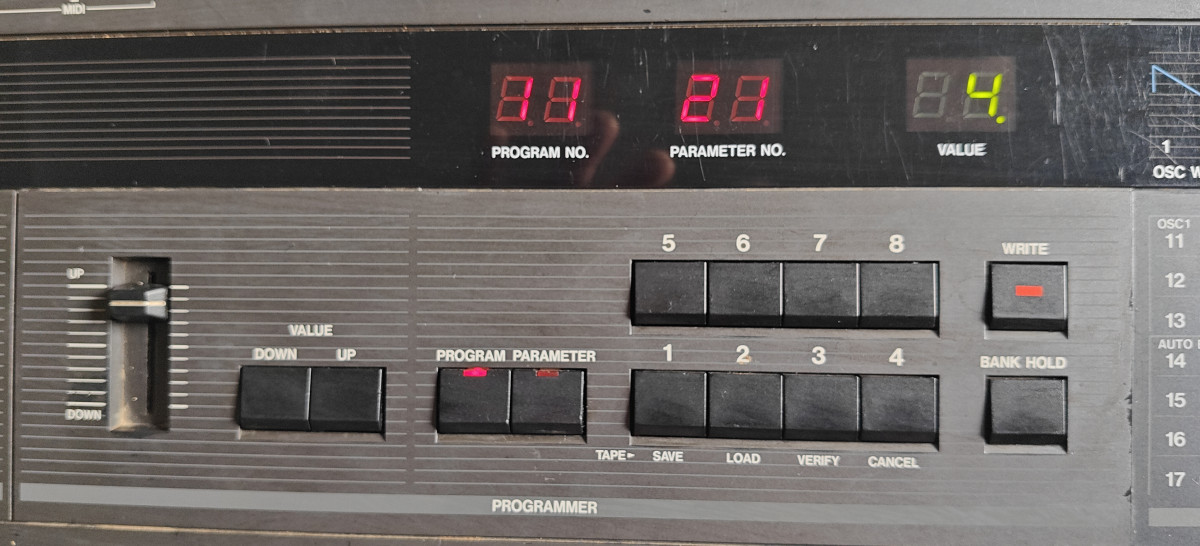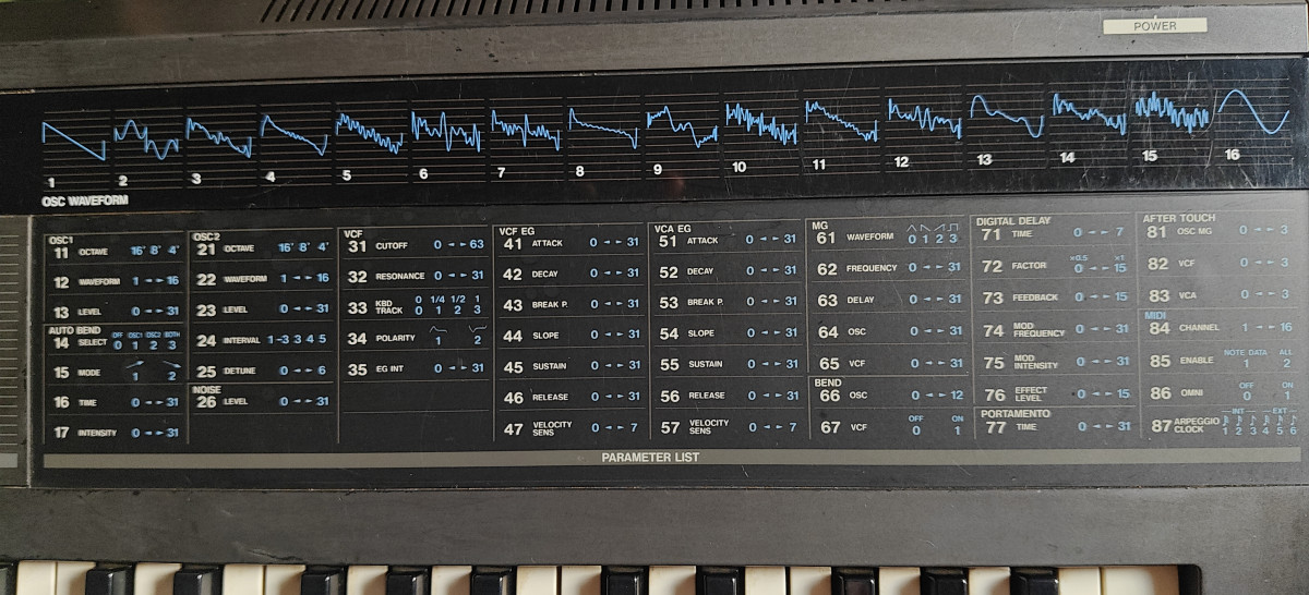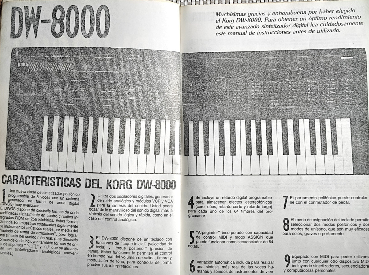 -Sintetizador polifónico programable de 8 voces con sistema generado de forma de onda digital.