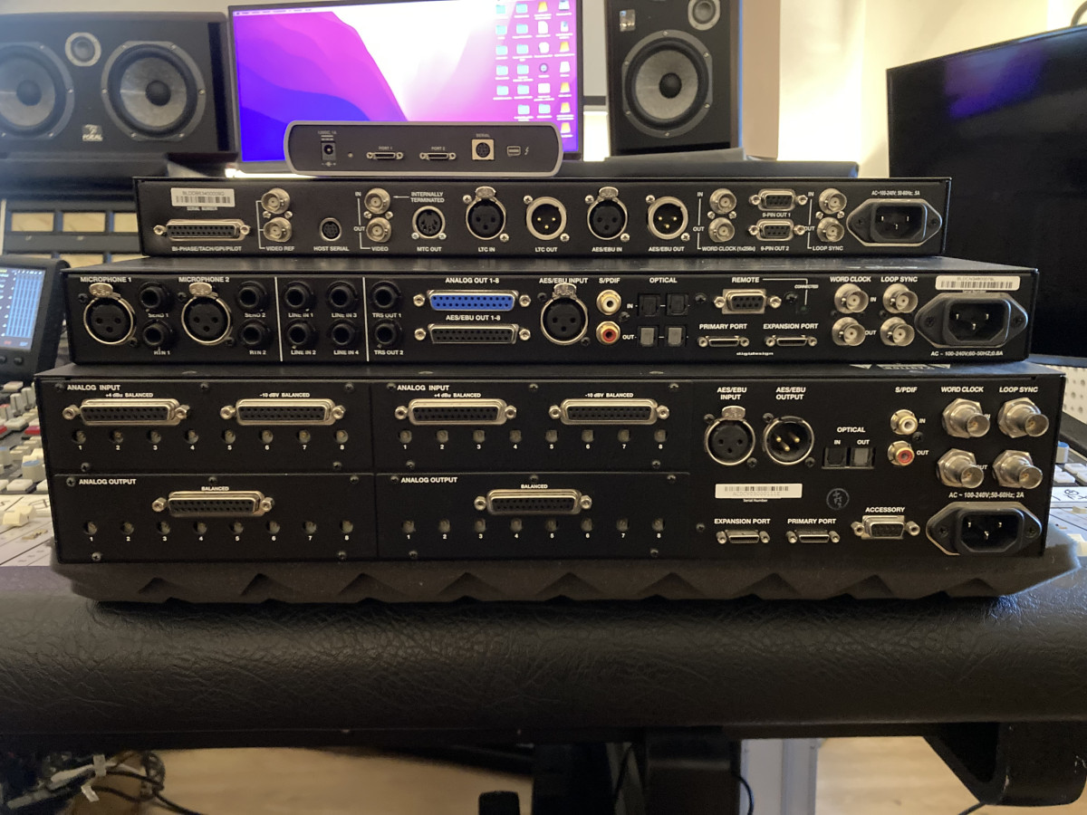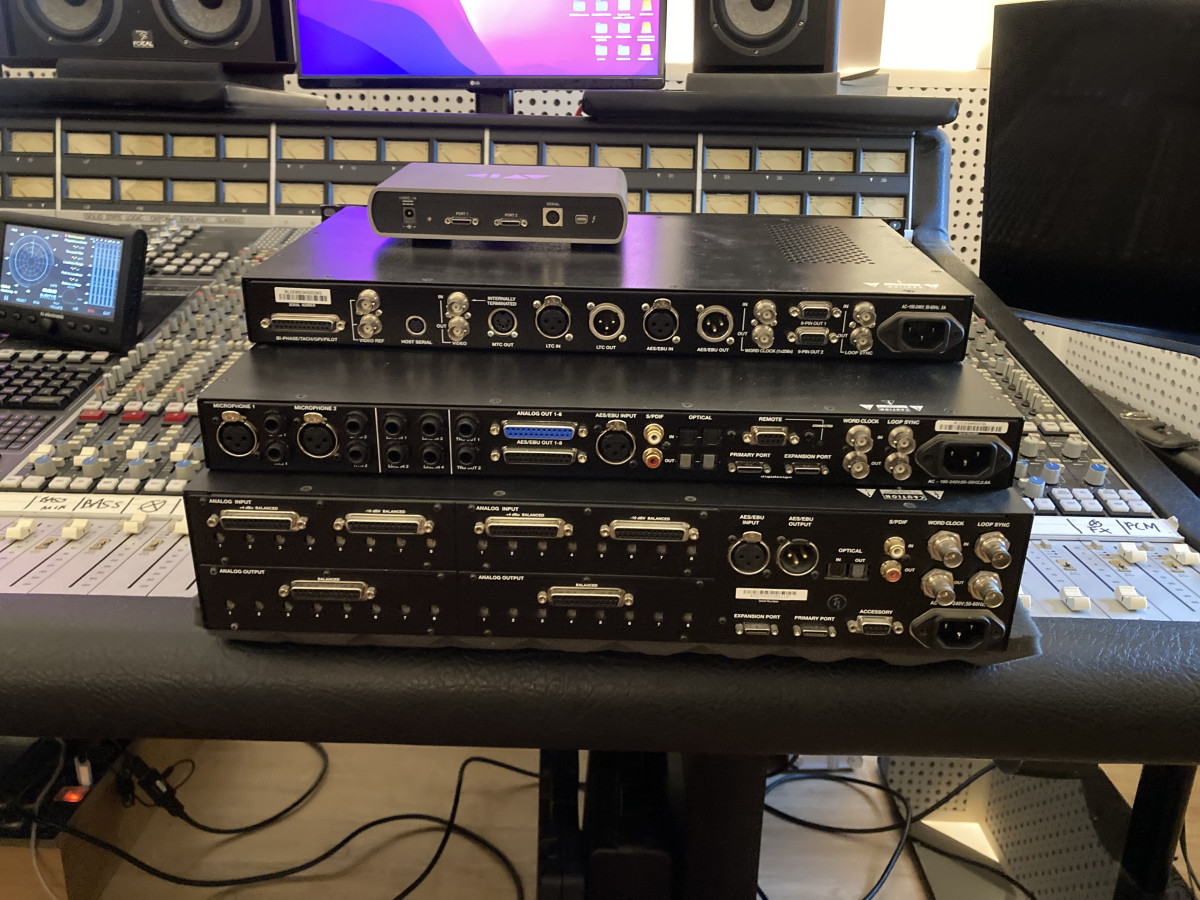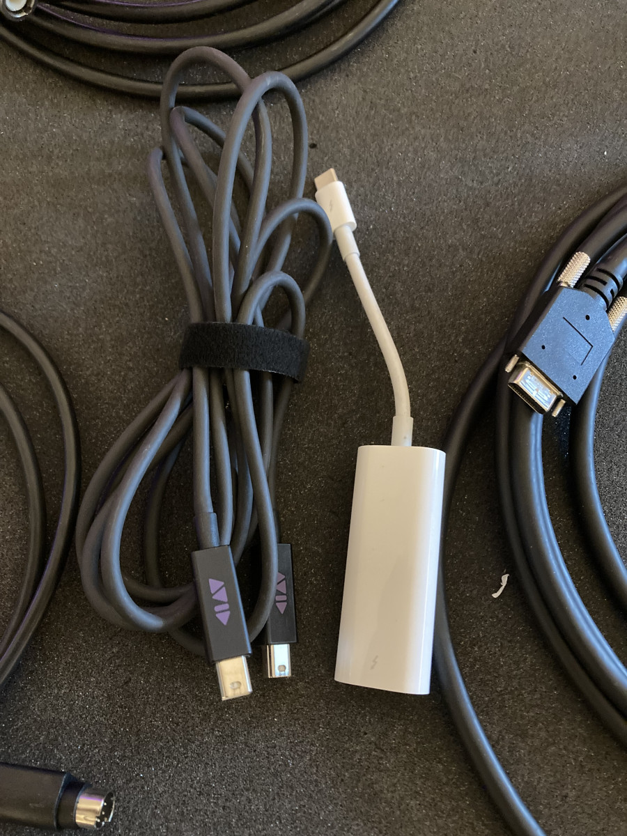 - Todo el cableado necesario: cable serial port para Sync HD, cables mini digilink, cable Thunderbolt (con adaptador apple de Thunderbolt a Thunderbolt 3 tipo usb-c)