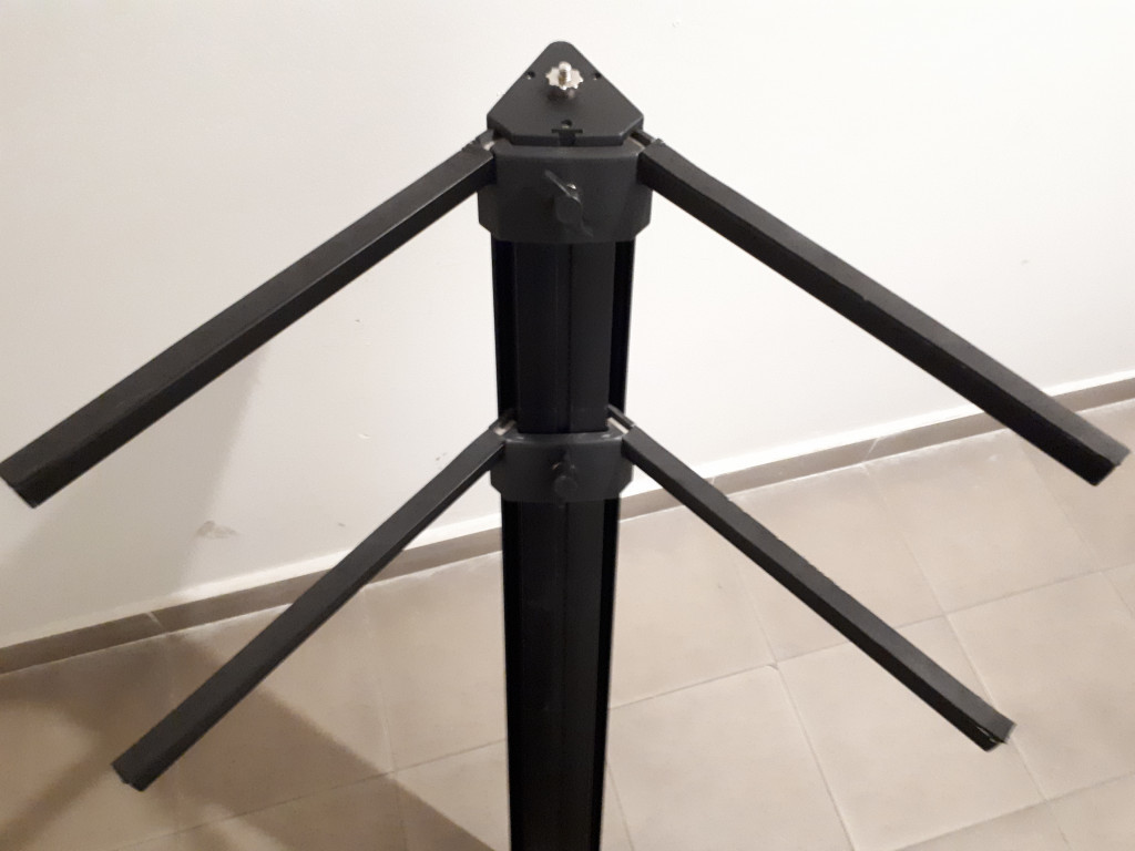 La altura de ambos niveles es ajustable. Plegado es muy cómodo a la hora de meterlo en la furgoneta. Mide aproximadamente 118 cm de alto.