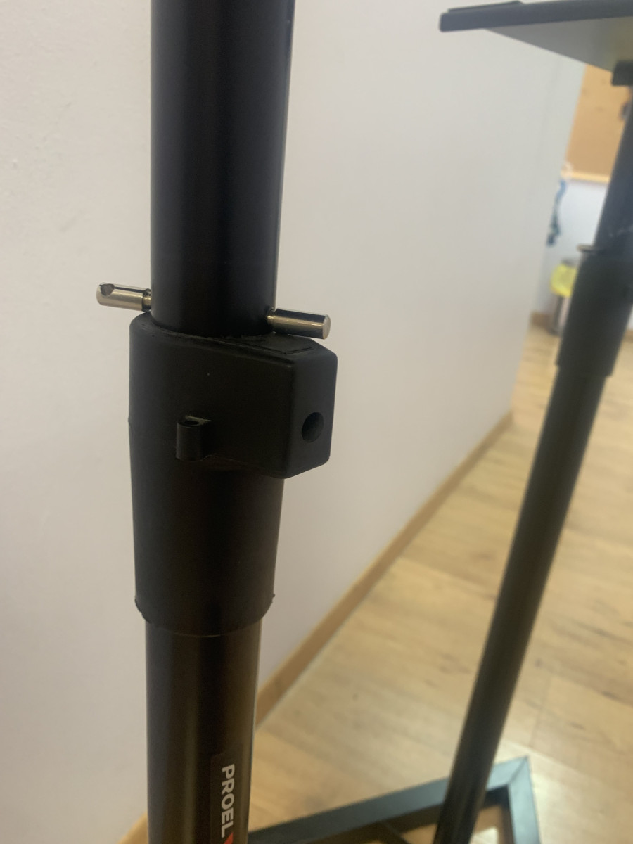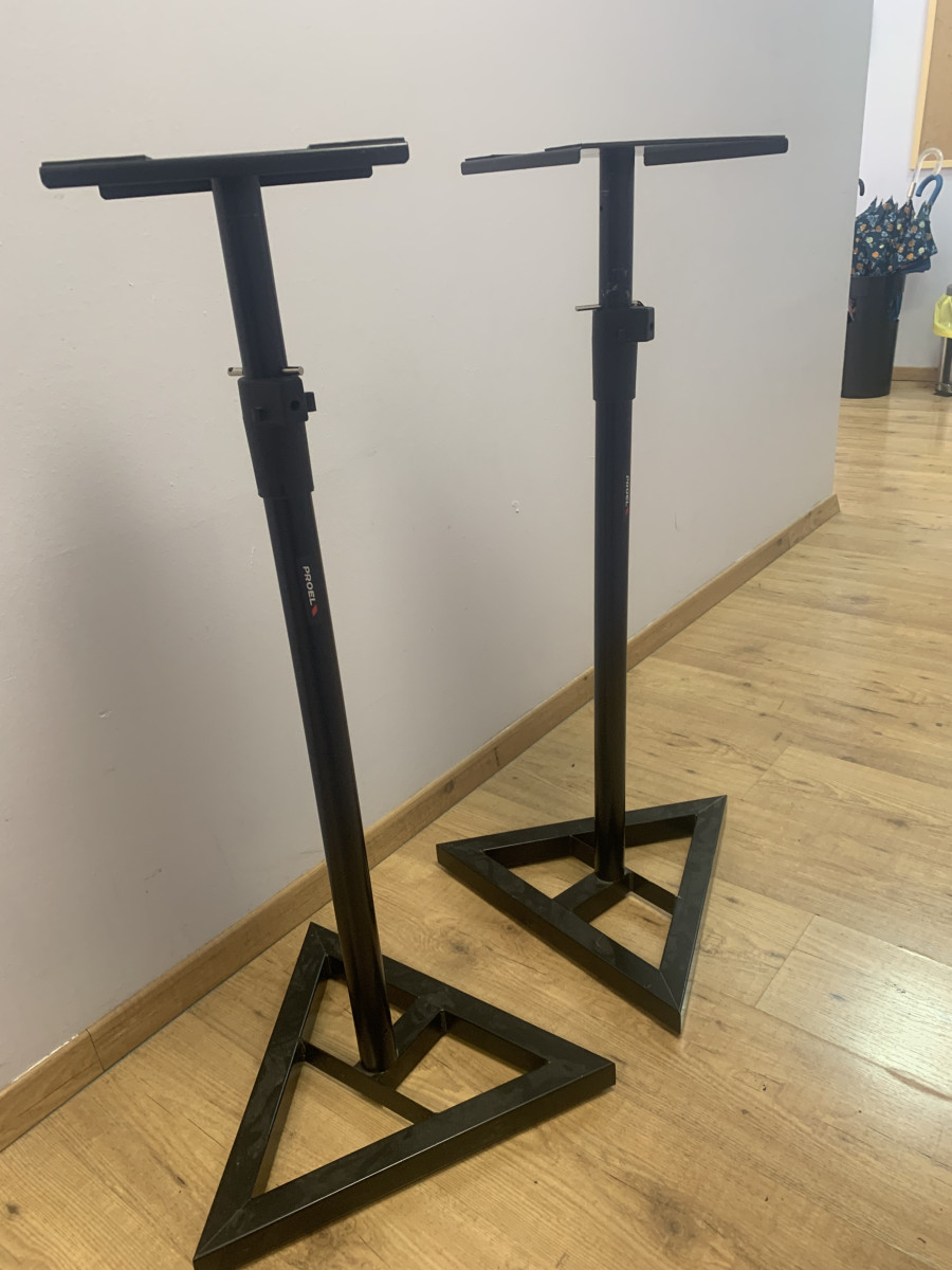Pareja de soportes de suelo Proel para monitores de estudio. las fotos desctiben su estado. Son robustos y estables, ideales para una configuración de audio profesional.