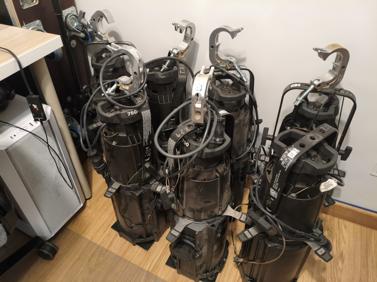 Vendo siete focos de teatro ETC Source Four 25/50 en buen estado. Es un aparato robusto y aparentemente en excelentes condiciones.