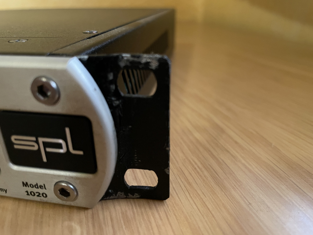 El estado de funcionamiento de la maquina es excelente, pero estéticamente tiene una de la alas algo doblada, esta enderezada y se puede colocar en rack sin ningún problema, no fue por golpe, fue por que en mi antigua mesa de mastering desmontando las maquinas se doblo.