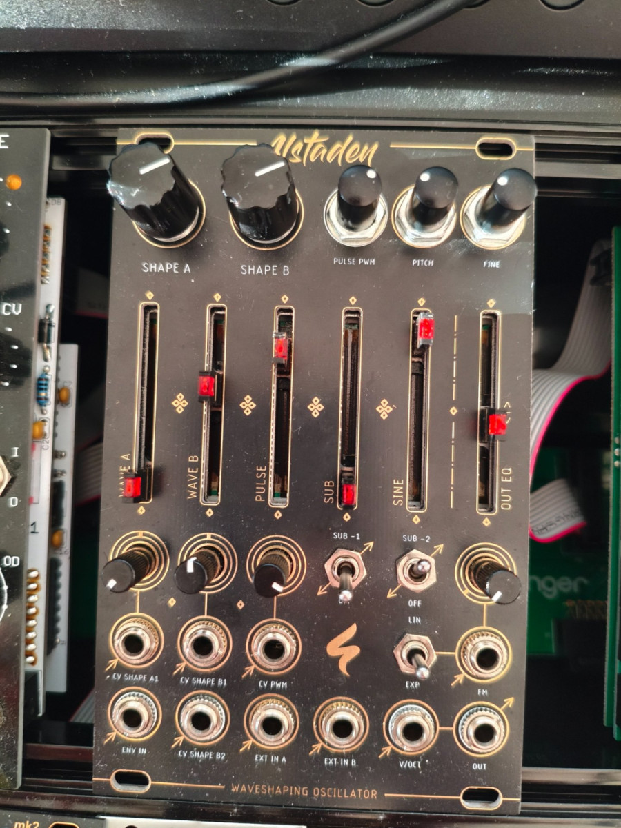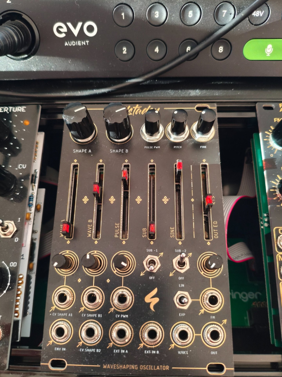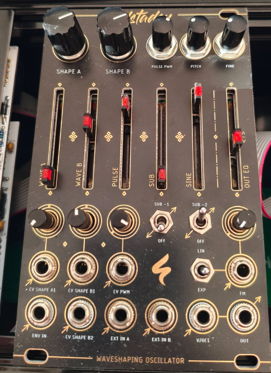 Oscilador de modelado de ondas St modular completamente analógico, 2 wavefolders, selección de forma de onda,2 subs, fm, pwm, sonido analógico agresivo basado en diodos y waveshapers, eq integrado, posibilidad de procesar dos señales externas por los wavefolders. Sonido brutal.