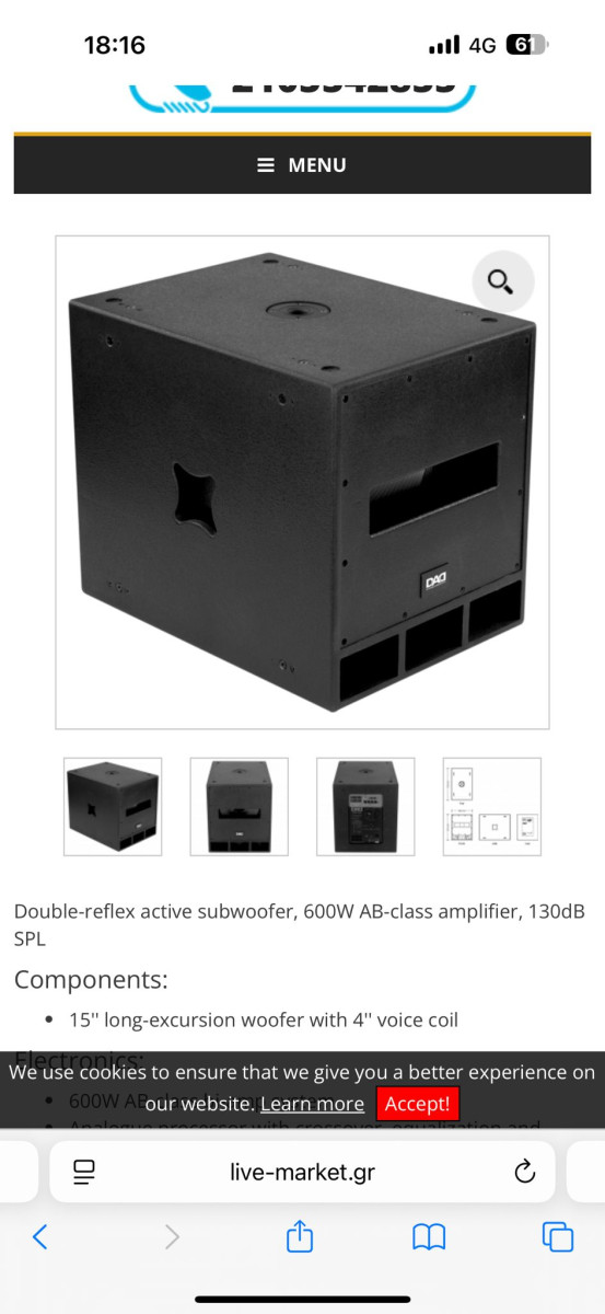Este anuncio "Subgraves autoamplificados 15"" está clasificado en la categoría Equipo de sonido en vivo e iluminación.