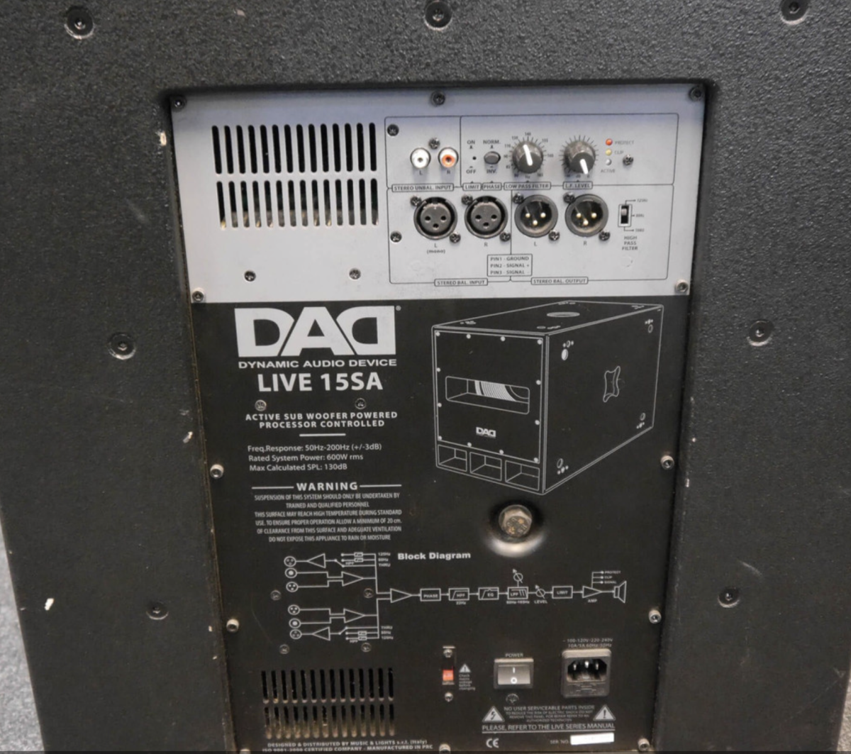 Se venden dos subgraves autoamplificadoos de 15" y 600w.