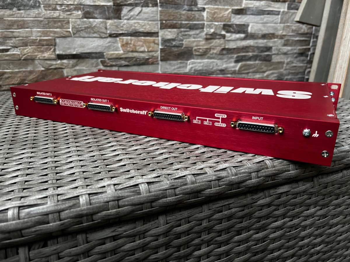 Divisor de señal de 8 canales en una unidad de rack. Con atenuador de entrada para señales de línea. Tiene tres salidas, una directa y dos aisladas por transformador, con conectores sub-D (TASCAM DTRS). Entradas frontales por XLR. Está impecable, como nuevo.