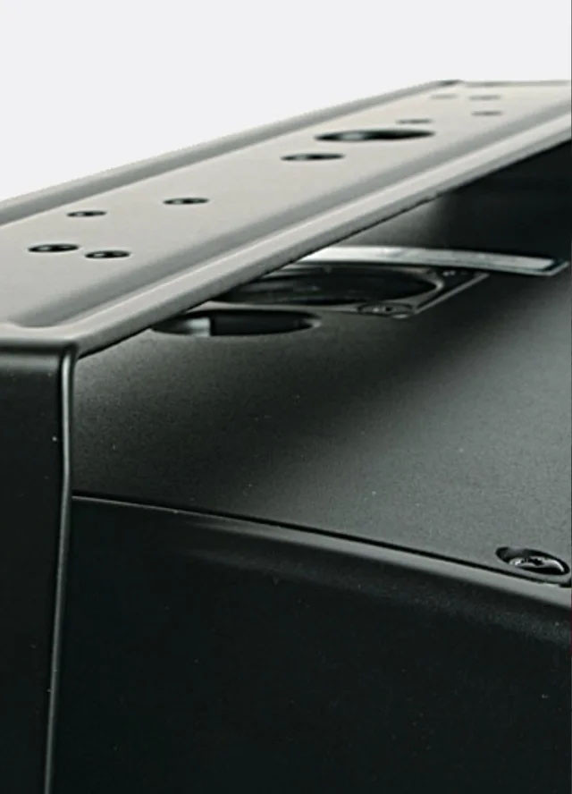 Precio por una pareja con los soportes en yugo. Con una unidad de transmisión ICT altamente confiable, estos gabinetes con acabado texturizado en negro cuentan con una rejilla de acero perforada con sello de goma. La unidad motriz tiene un cono de polipropileno y un marco de caucho de nitrilo para mejorar aún más la impermeabilidad.