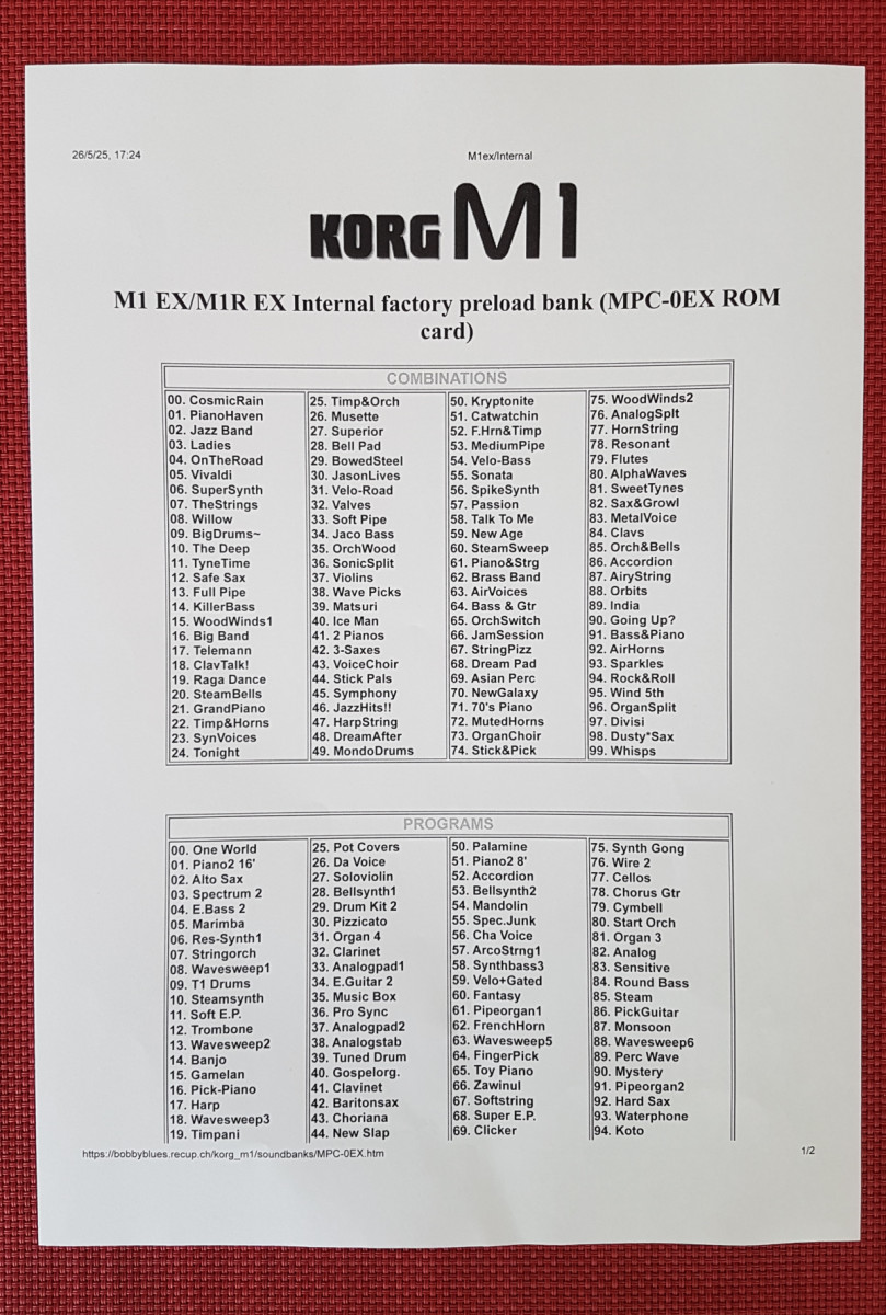 Tarjeta Korg M1 MPC-0EX ROM en buen estado. Se incluye la tarjeta,estuche original y pdf listado contenido: combinaciones, programas y sequencias.