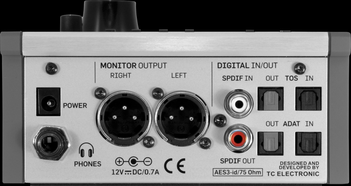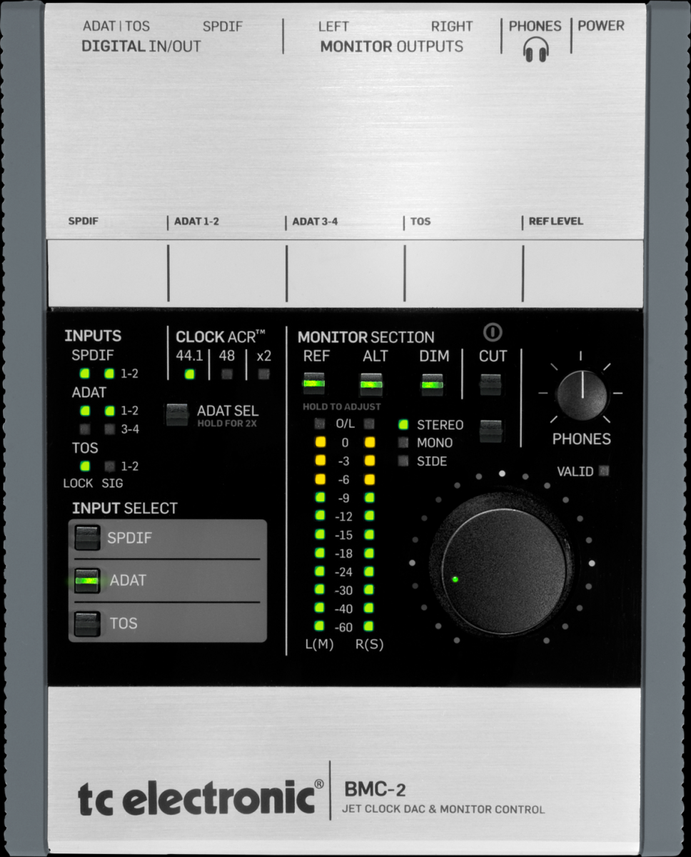 Características del controlador de monitoreo TC BMC-2: entradas analógicas o digitales entrada/salida S/PDIF utilizables también en formato AES-id3 conexiones analógicas XLR para las salidas de monitor valioso regulador giratorio para el ajuste de volumen altavoces o auriculares ajustables