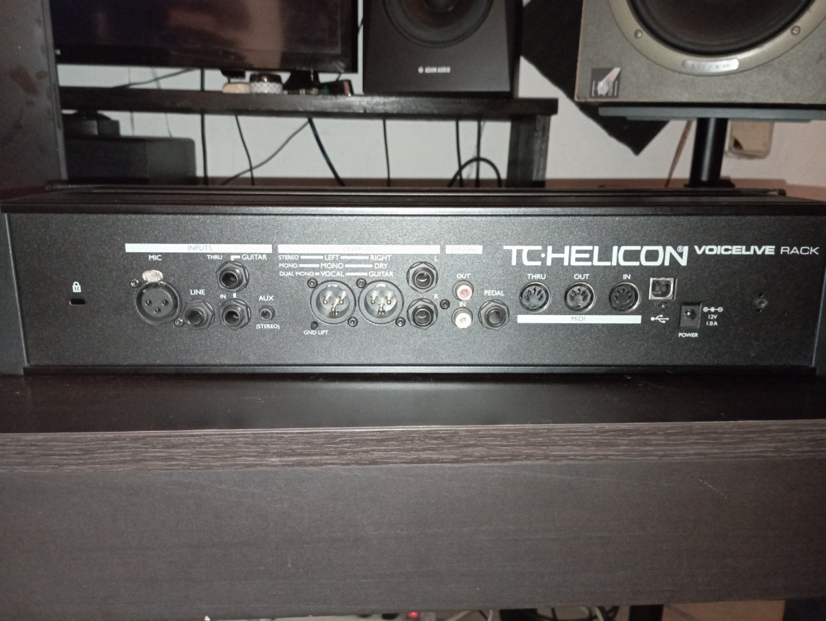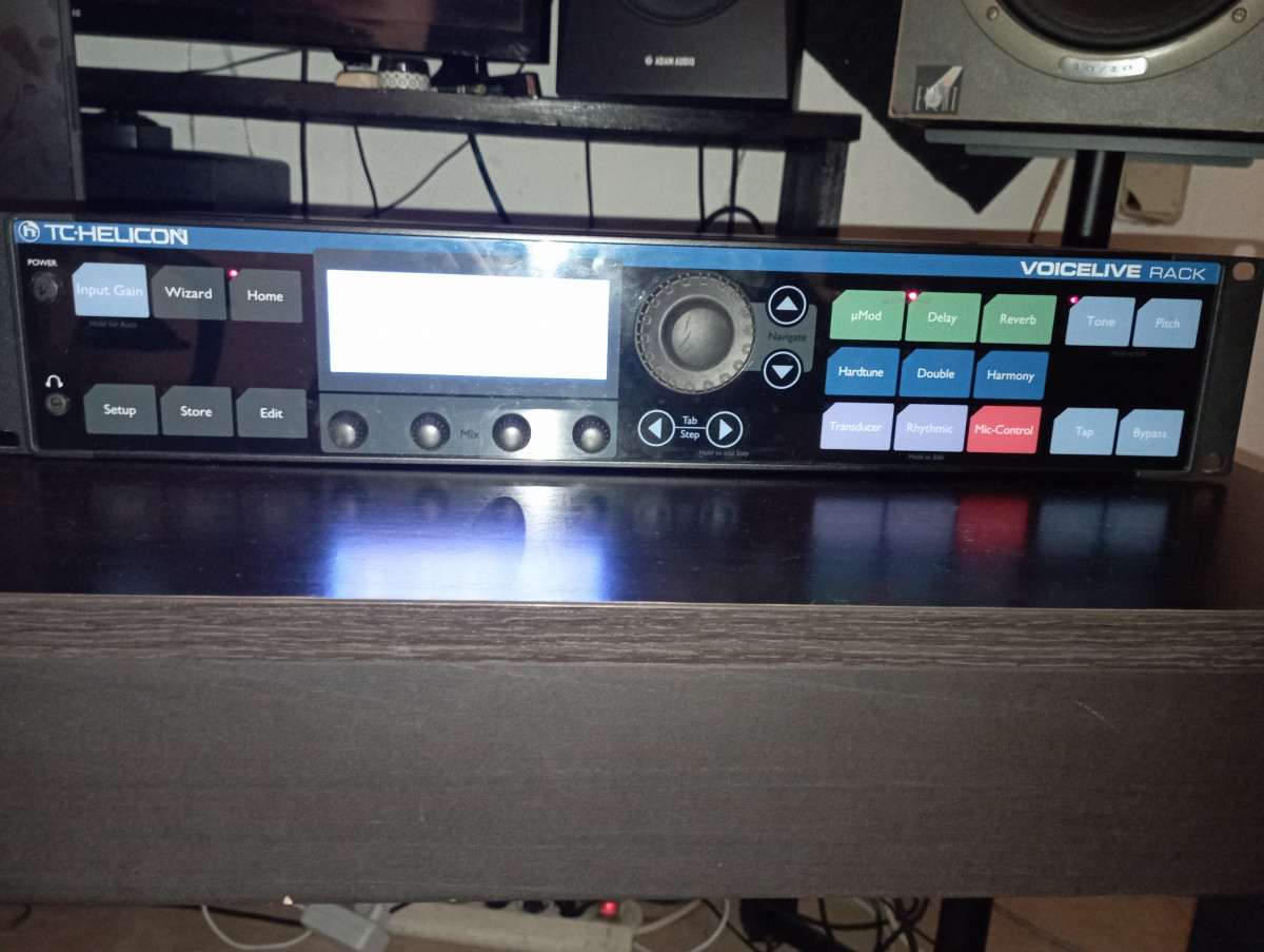 - Procesador de efectos vocales TC Helicon, montaje en rack.