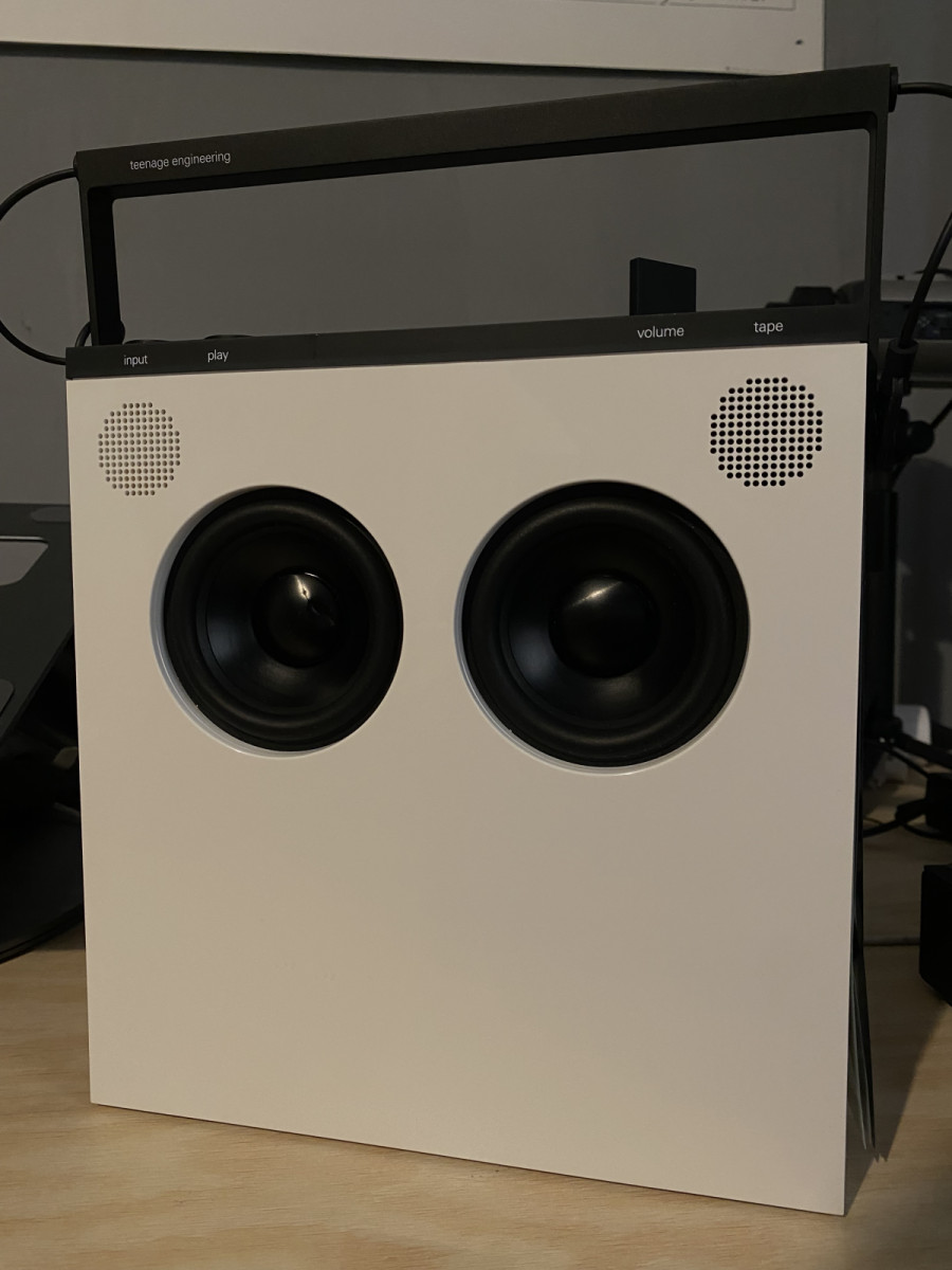 Vendo mi Teenage Engineering OB-4 en increible estado. Usado menos de 6 meses, aun en garantia durante 3 años. Todos sus cables y caja de fabrica. Tiene un pequeño desperfecto en un woofer (ocurrio que un objeto se apoyo levemente) pero junto con el soporte de Teenage Engineering llegamos a la conclusion de que es MERAMENTE ESTETICO (Ultima foto. No afecta EN LO ABSOLUTO al audio) y que la reparación con ellos cuesta 95€ (precio que descuento ya y que incluye el envío y vuelta hacia su warehouse). De resto está completamente impoluto.