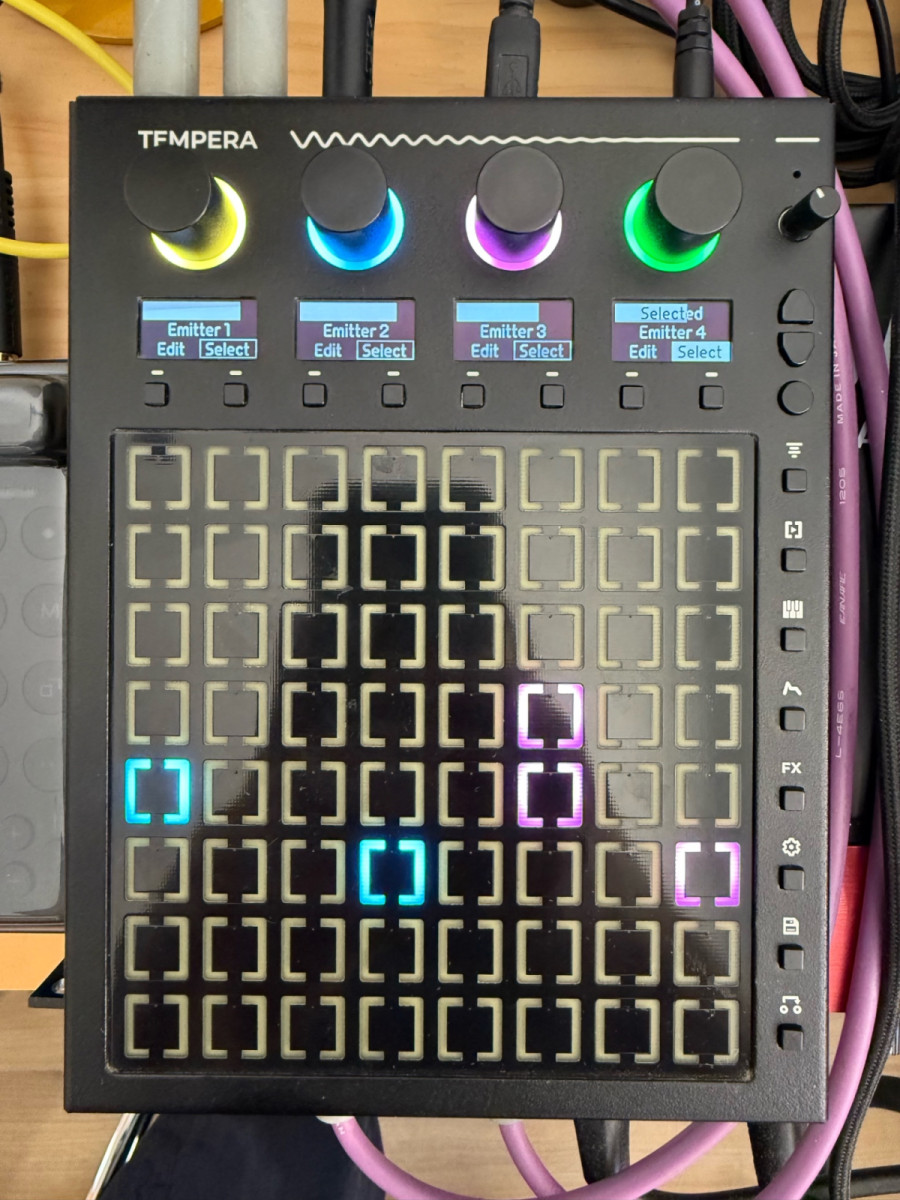 Sintetizador granular, groovebox con sensores matriciales. En realidad, son 4 sintetizadores granulares en uno, con la posibilidad de trabajar simultáneamente con 8 samples. Incluye caja original, fuente de alimentación y tarjeta SD de 32 GB. Usado en estudio casero durante seis meses. Tiene el firmware más reciente.