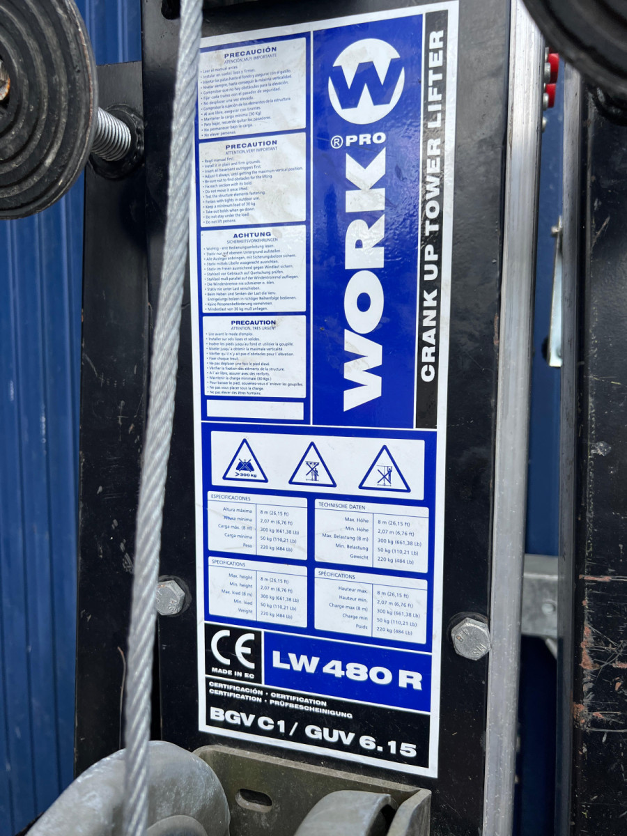 Se venden dos torres de carga frontal Work LW480 R sube 8 metros y 300 Kg.