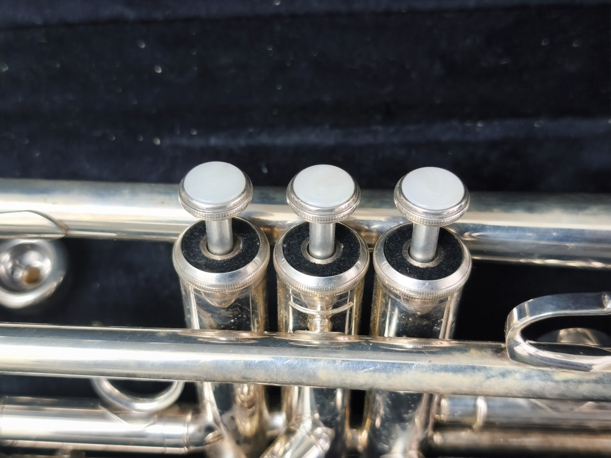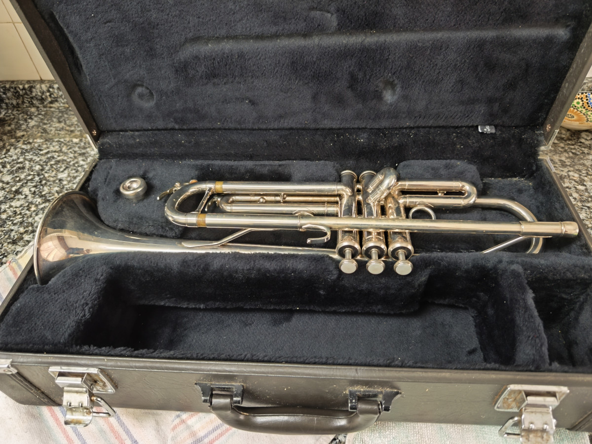 Trompeta en buen estado de conservación. Color plata Tipo Estándar El instrumento está perfectamente cuidado, con pistones y bombas que funcionan correctamente. Sonido limpio y brillante, peso ligero, perfecto para estudiantes de conservatorio como para músicos que busquen un instrumento fiable. Con su estuche Yamaha y algunos Extras. Sordina y otros