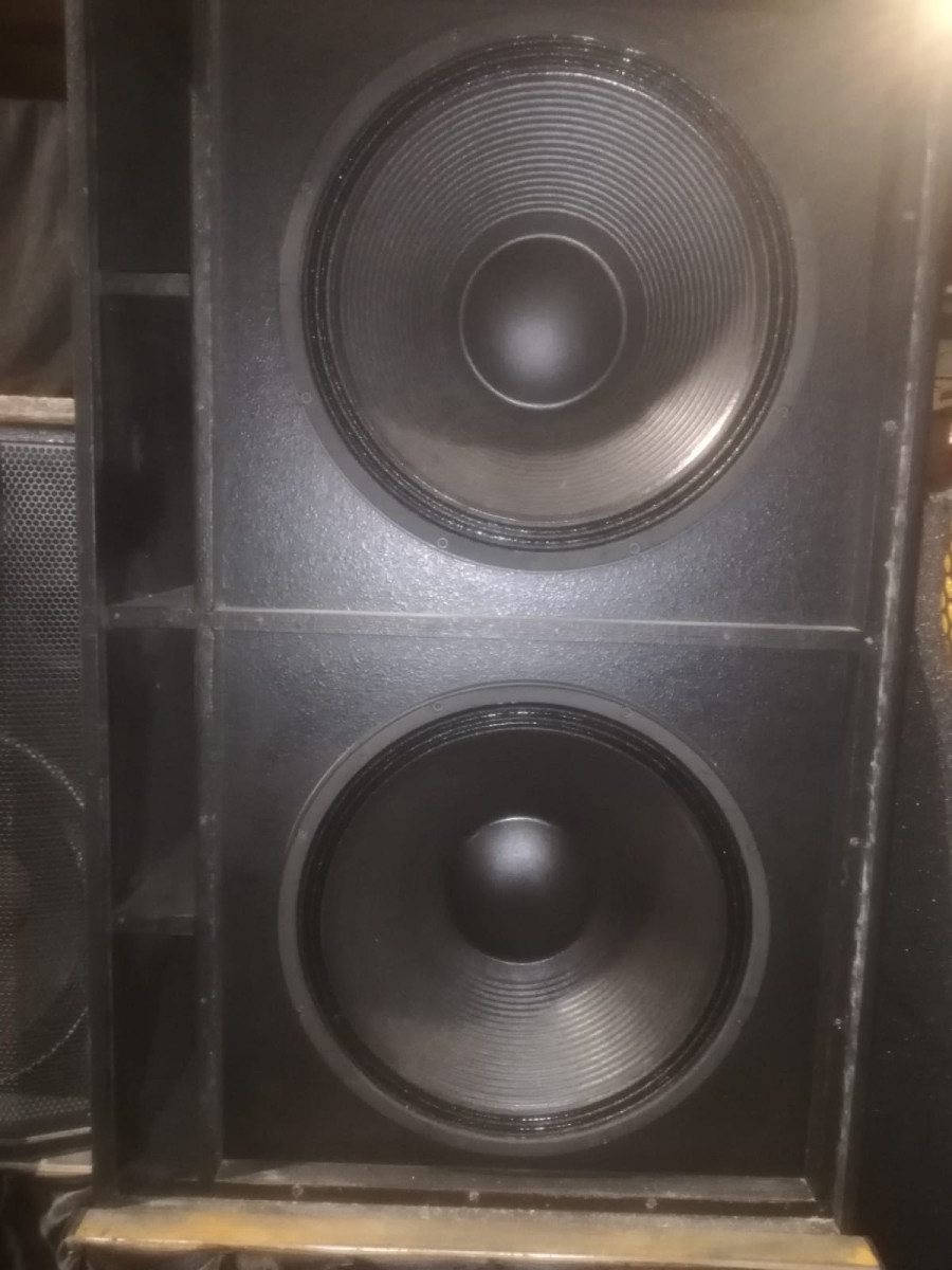 Caja de subwoofer de doble 18", 142 dB con altísima calidad y mucha pegada. quien conoce la marca sabe de lo que se trata. Son unas auténticas bestias. Está en muy buen estado y lleva los 2 conos originales. Me queda 1 unidad, 6400 w de ""picos"" por caja