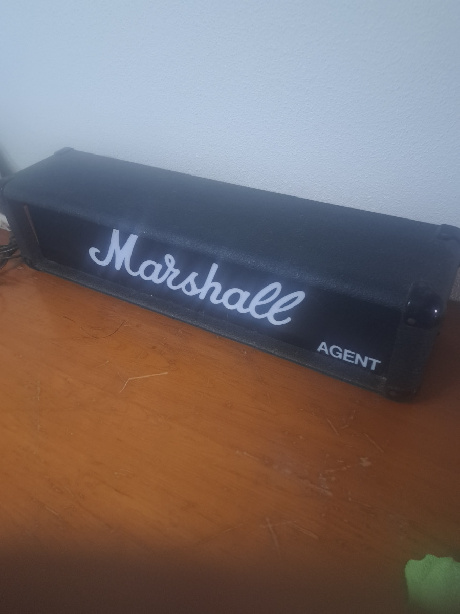 Marshall. Cabezal de amplificador de 73 cms. de largo. Hecho del mismo material que los amplificadores. El primer artículo promocional que se hizo en los 60´s. Totalmente vintage. Se ilumina. Perfecto para decorar en casa o en estudio