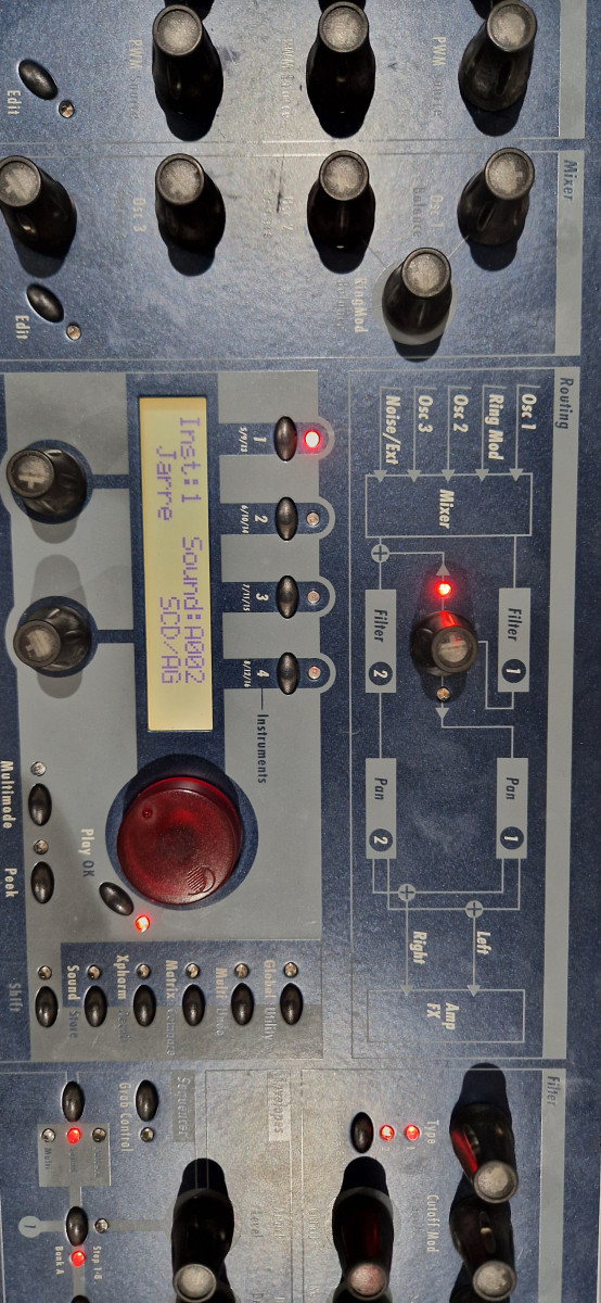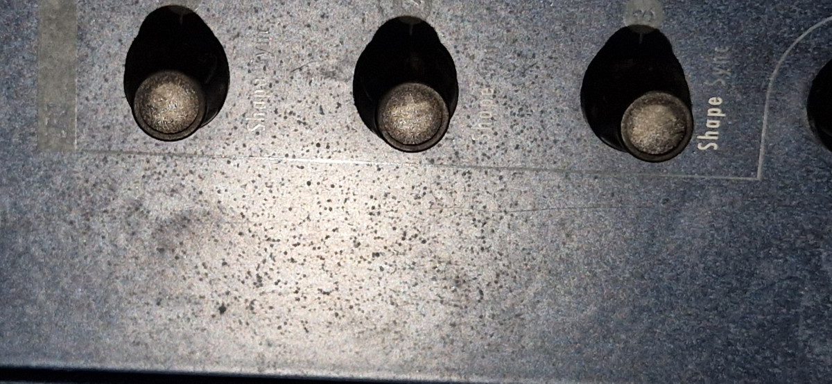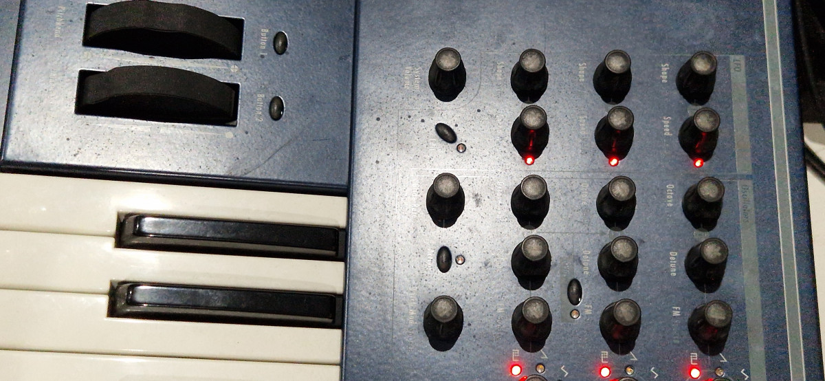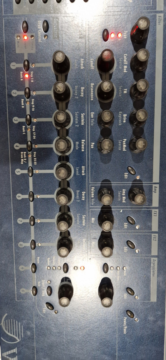 - Algunos 6 potenciómetros (cuttof, resonance, release/mode 4, decay/decay 2, release/mode 8, tempo) presentan saltos de valor, así que úselos con mucha lentitud y cuidado para evitarlos, o bien, deberán reemplazarse [creo que incluso con un uso continuado, podrían requerirse].