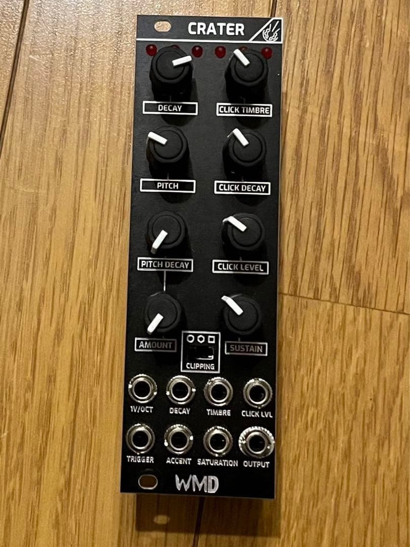 Módulo Eurorack WMD Crater en color negro en perfecto estado con caja original, brutal Kick con 3 tipos de Drive, tipos de click, muchos cv, sonido brutal analógico y gordo con pegada y cuerpo.